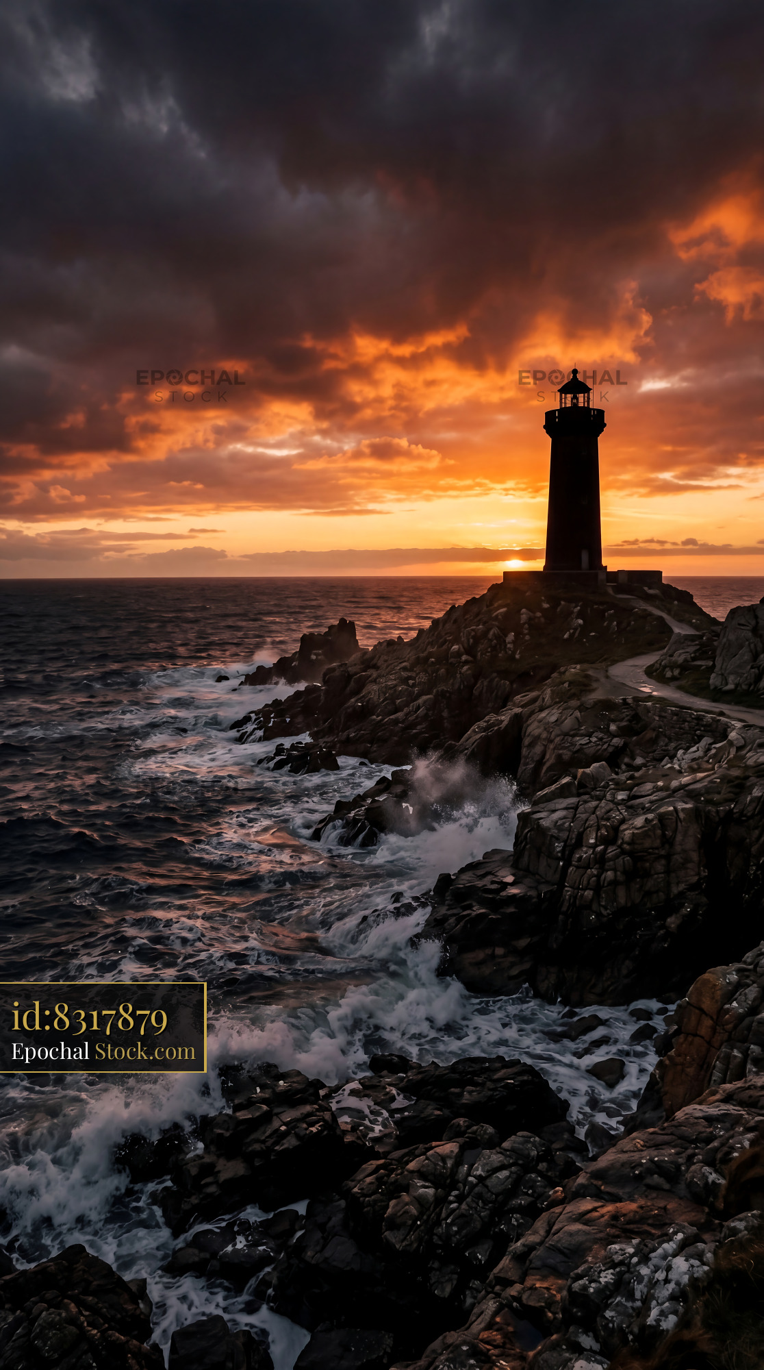 Fiery Sunset Lighthouse Silhouette