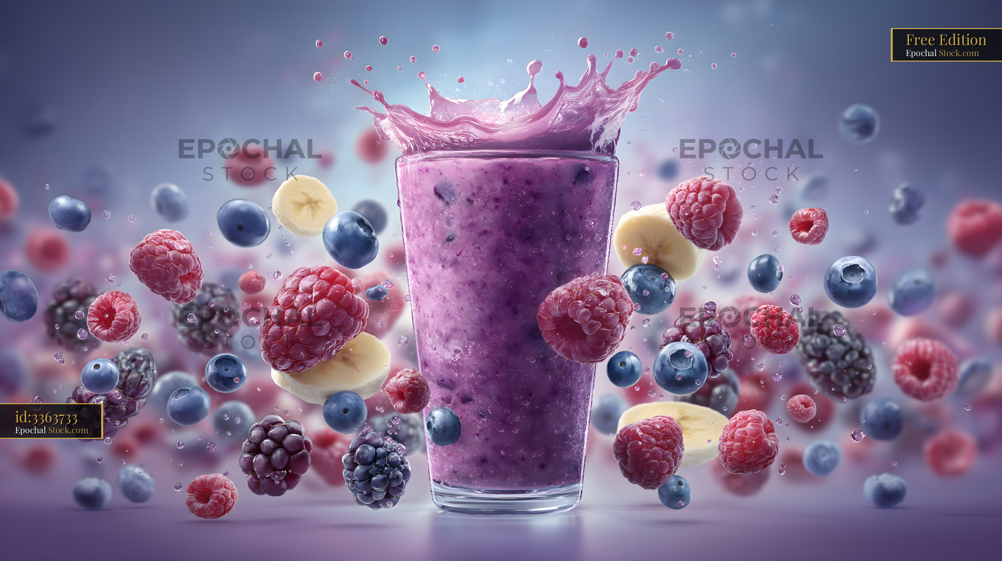 Fresh berry smoothie is splashing with fruits around Free Premium Stock Image