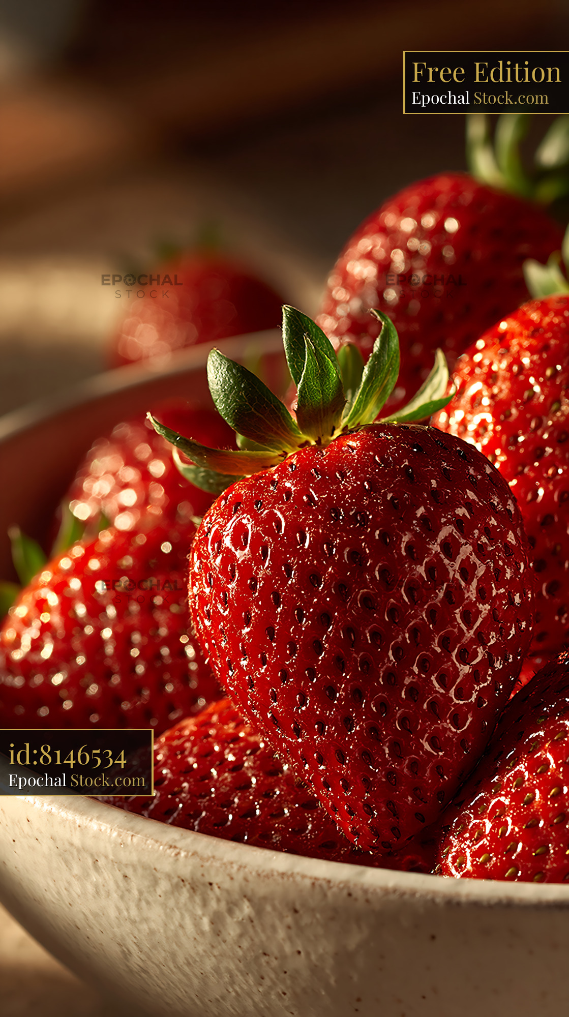 Vibrant red strawberries glistening in warm golden hour light, served in a rustic ceramic bowl during a summer garden party or barbecue, evoking a sense of fresh seasonal indulgence.