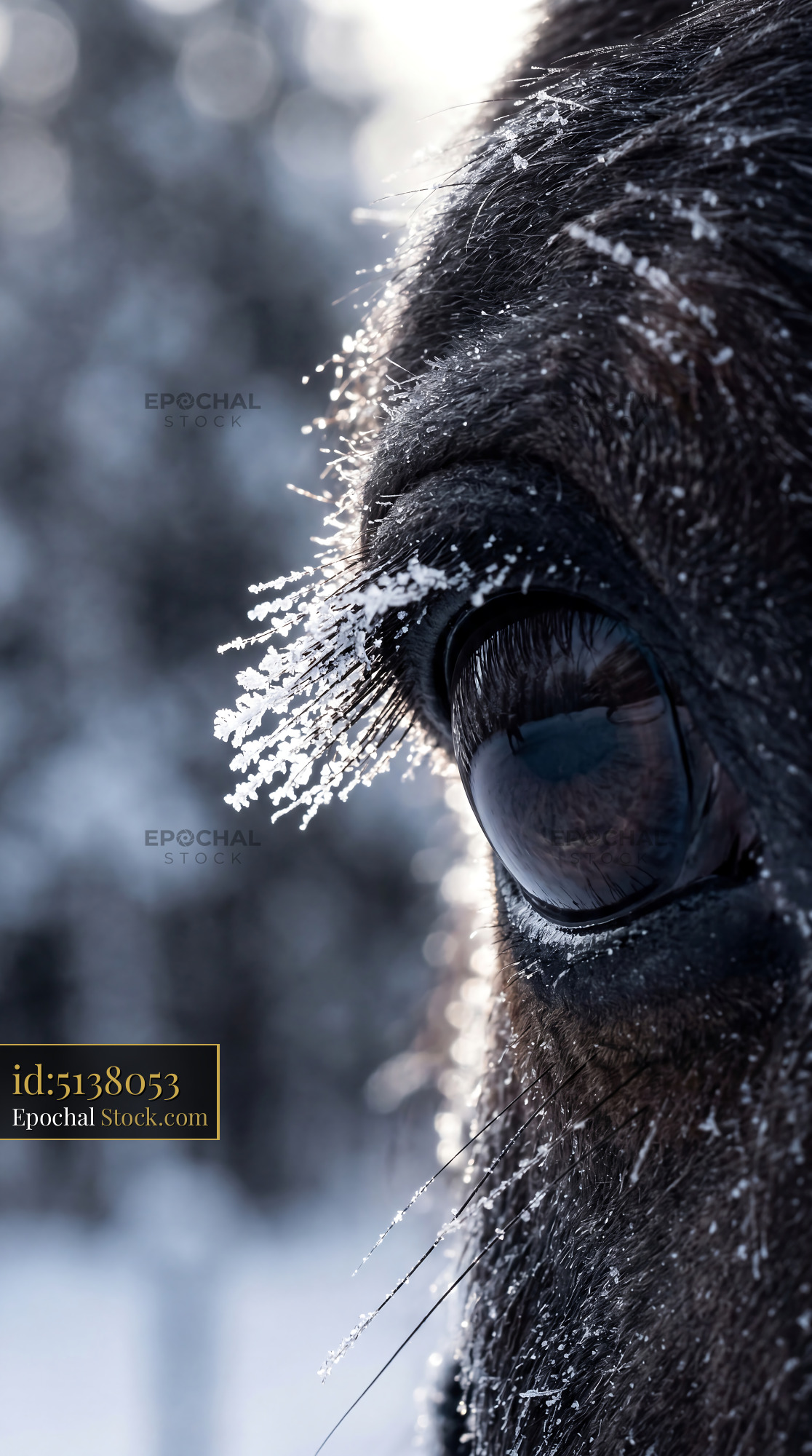 A seamless macro pattern of a horse eye with frosted eyelashes. Ideal for unique winter home decor, statement wallpaper, or custom equestrian-themed gift wrap and quilting fabric.