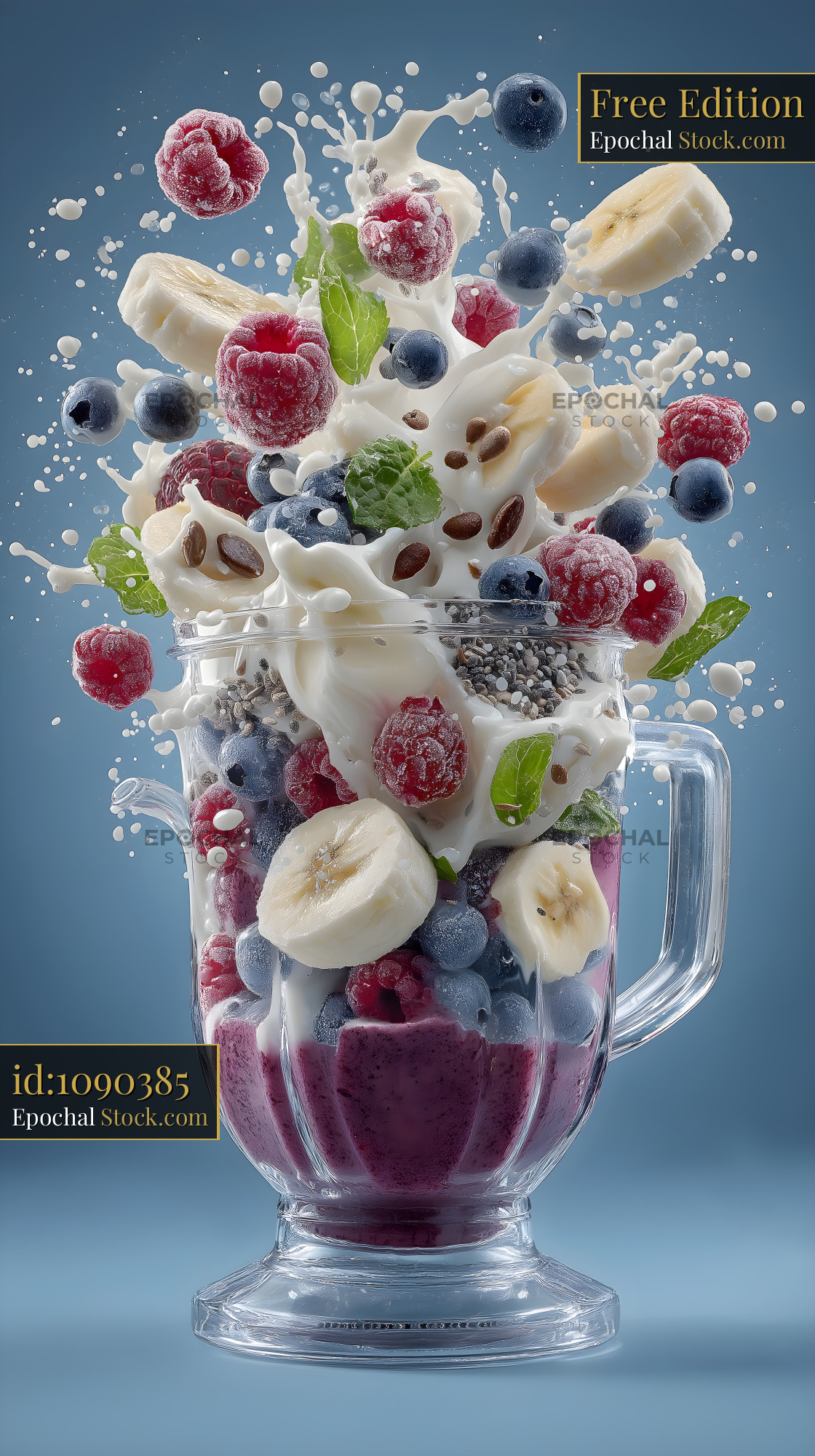 Fruit and yogurt mix in blender creates splash effect Free Premium Stock Photo
