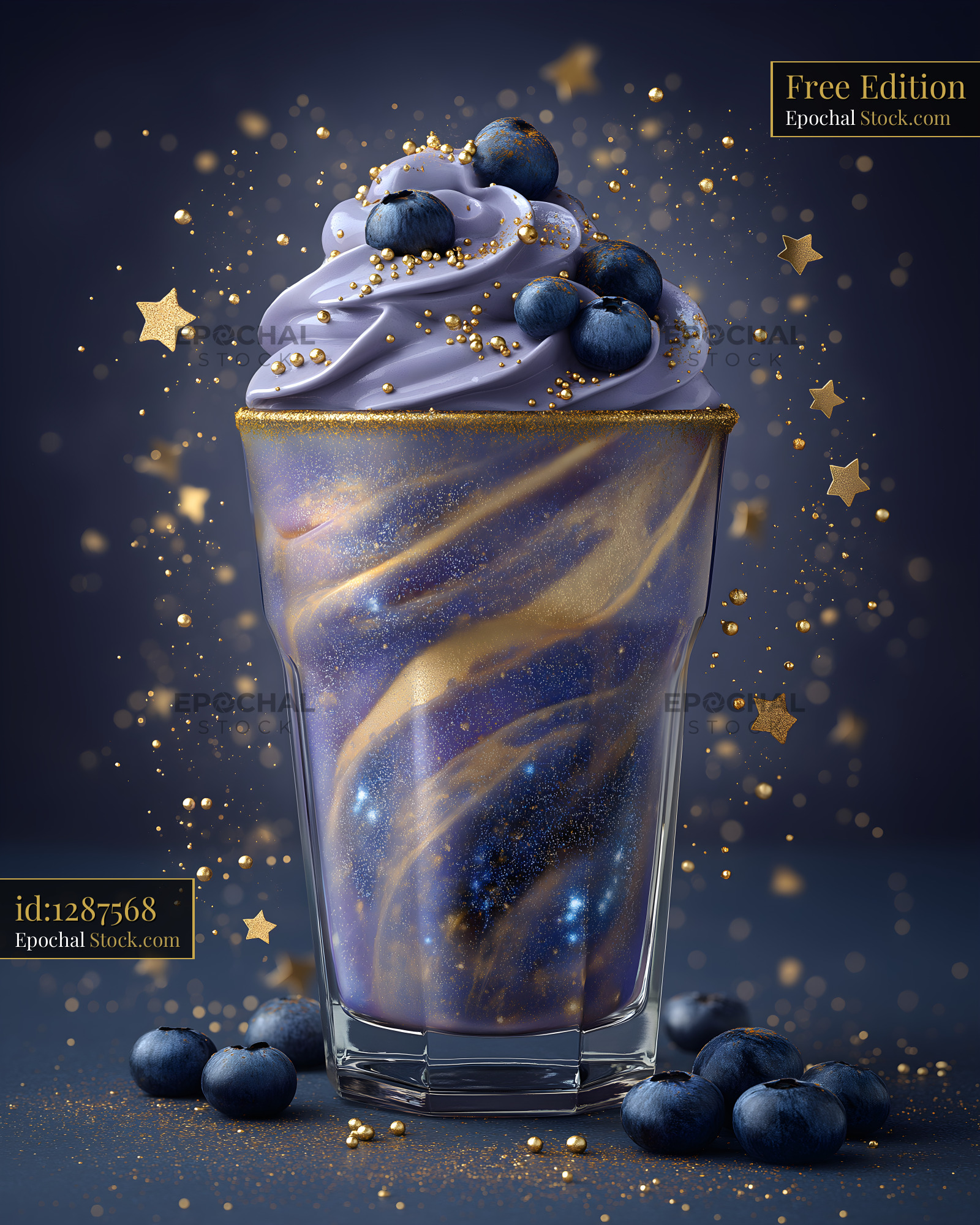 Galaxy twist drink with blueberries and gold accents Free Premium Stock Image