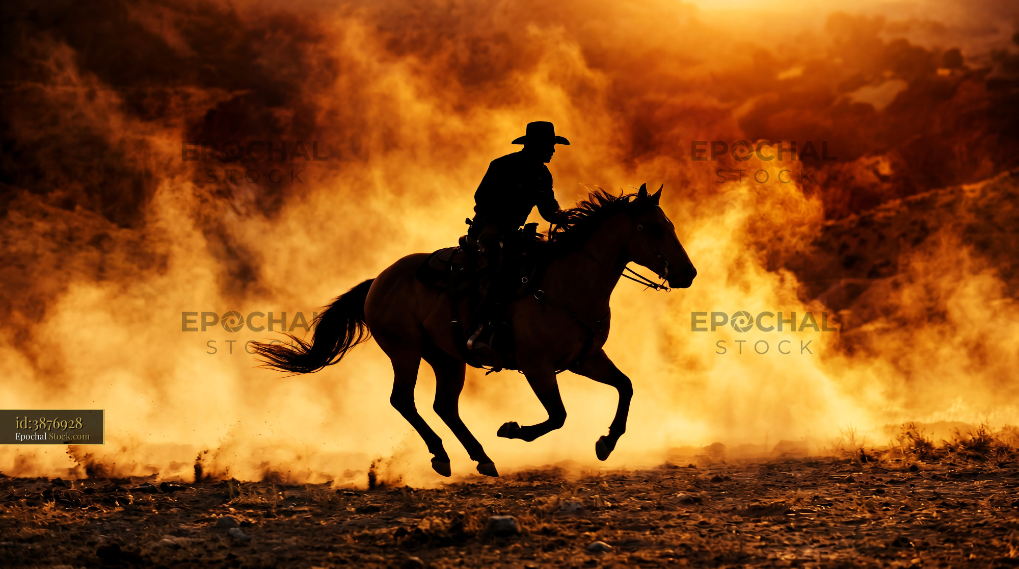 Galloping Cowboy Sunset Dust Silhouette