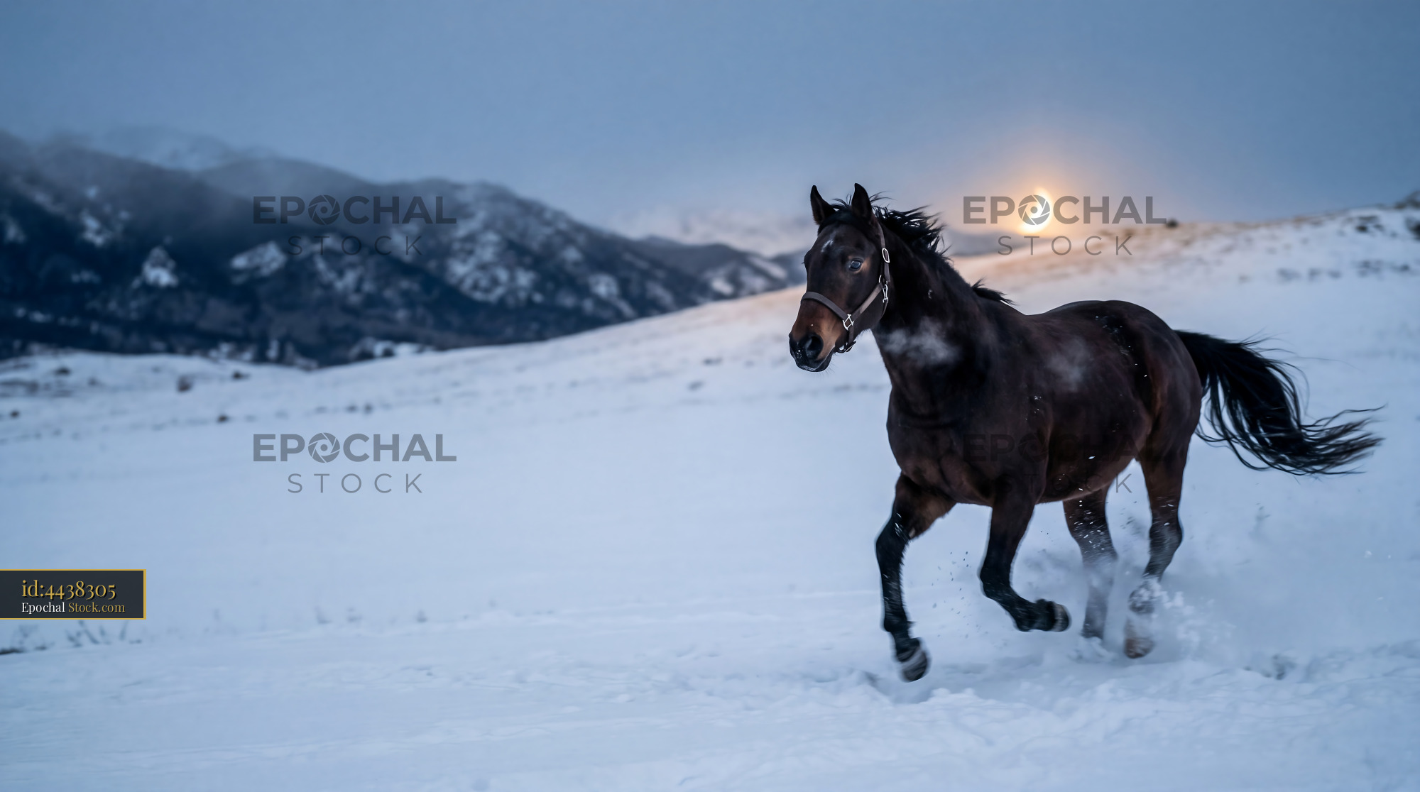Galloping Horse in Blue Hour Moonlight Snow
