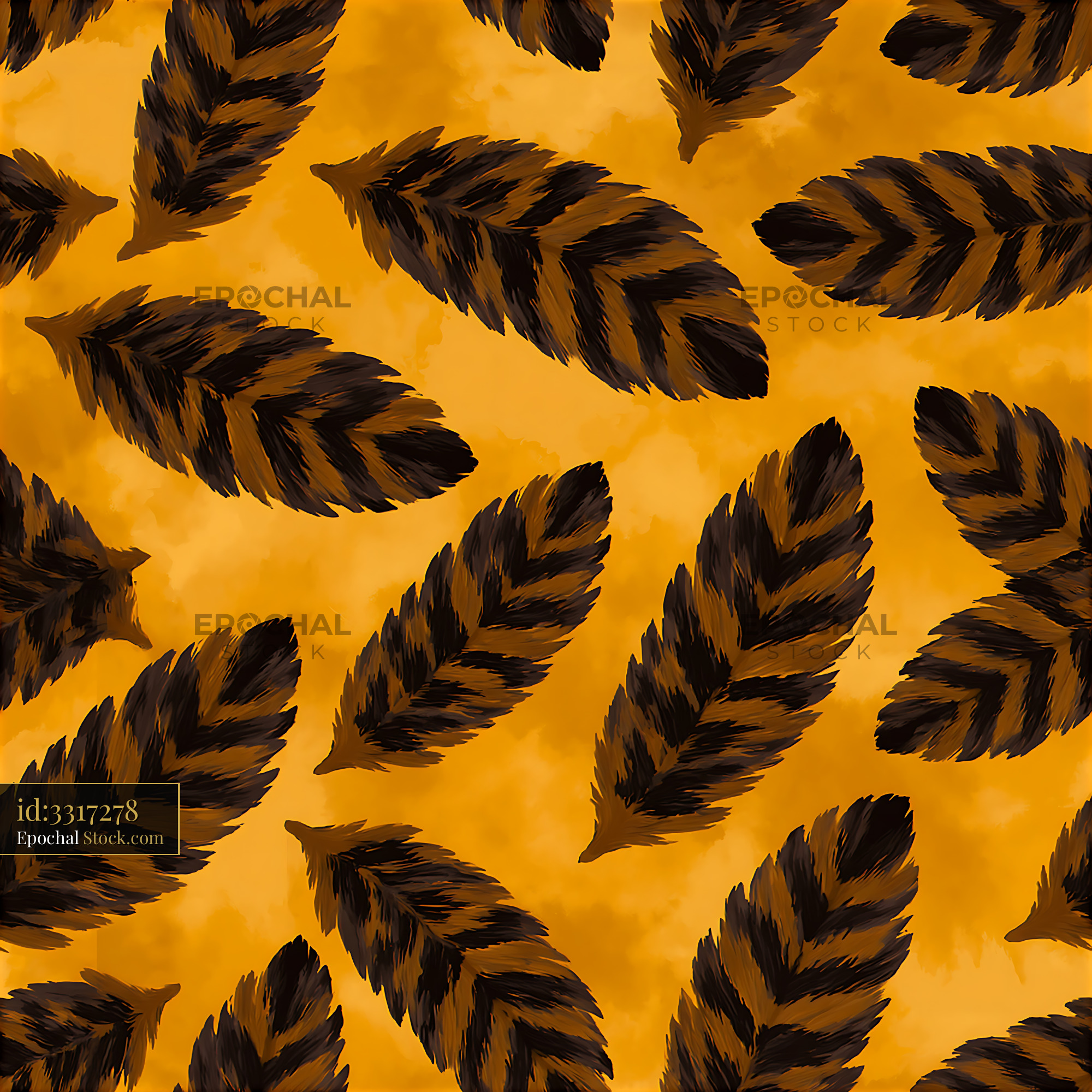 Earthy feather pattern featuring warm amber tones and bold stripes. Perfect for rustic home decor, autumn quilting, and nature-themed nursery wallpaper.