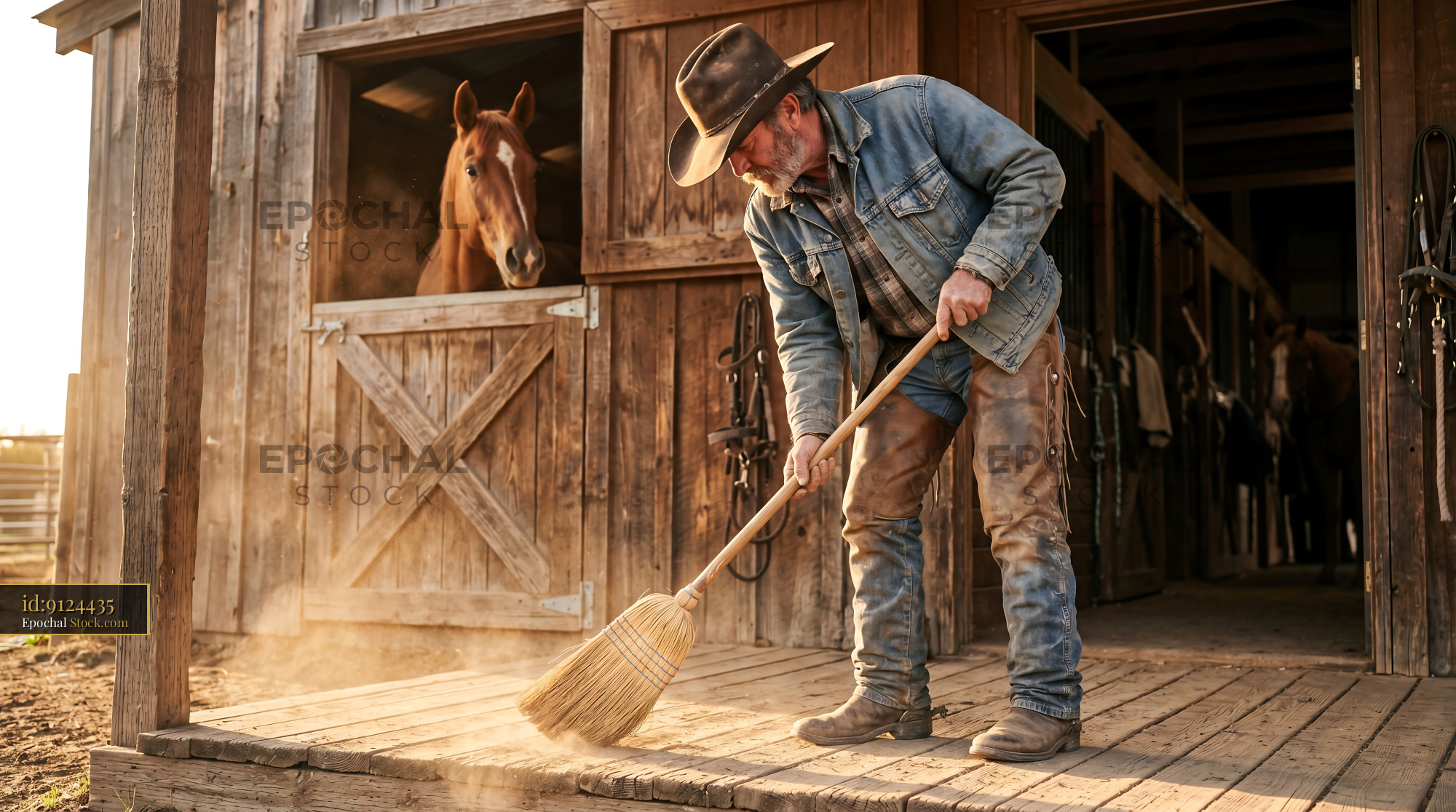 Capture the rhythm of a day well spent with this rustic western scene. Ideal for ranch-style quilting, home decor, wallpaper, and unique gift wrap.