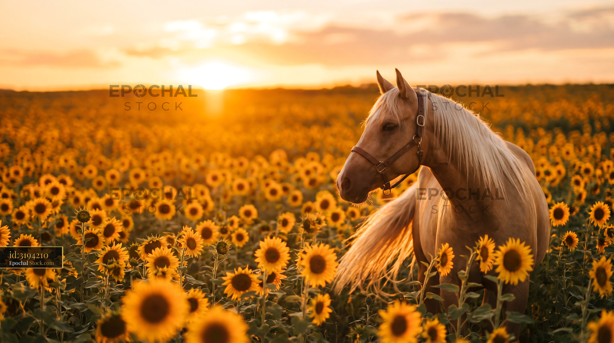 Golden Palomino Horse Sunflower Sunset Meadow