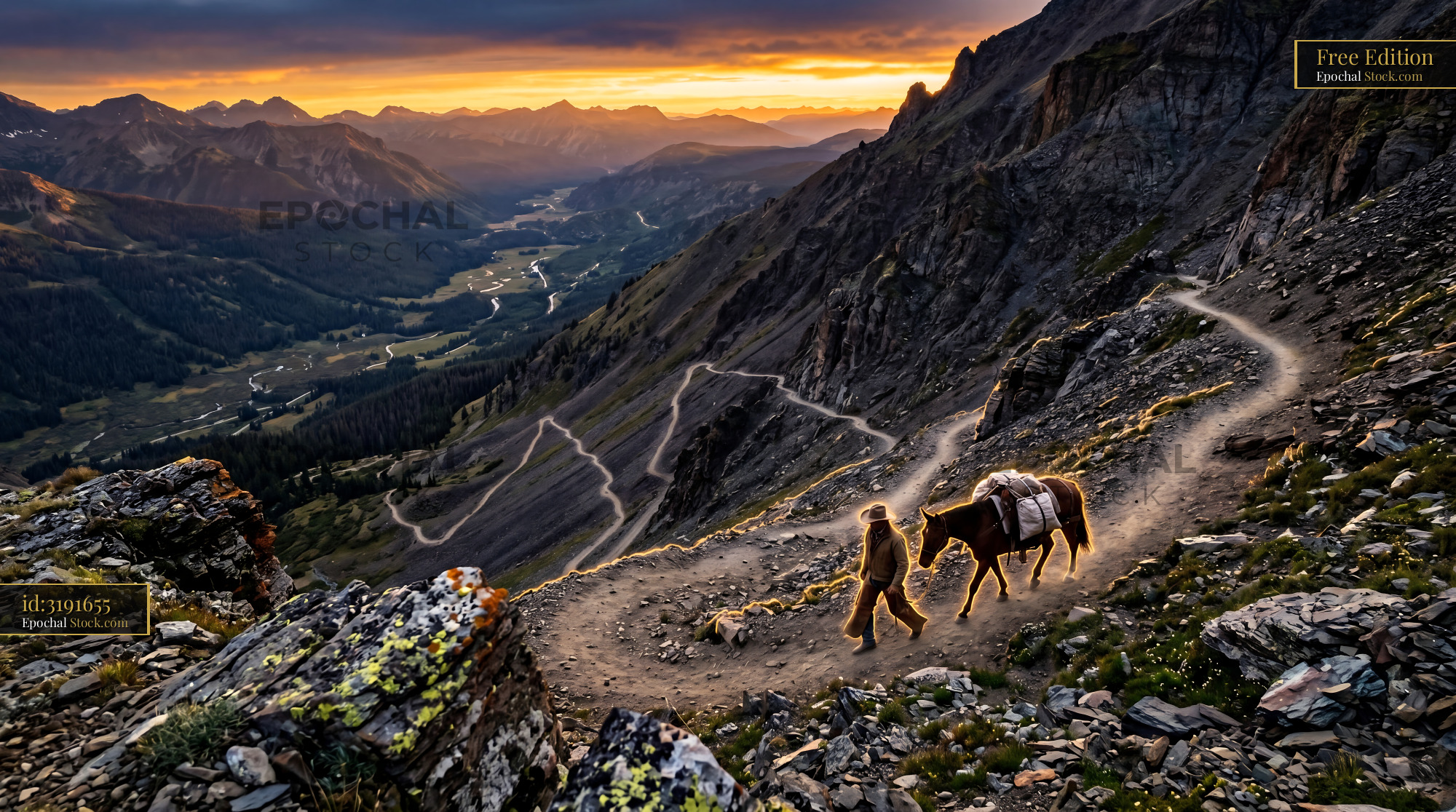 Golden Rim-Lit Cowboy Horse Mountain Landscape