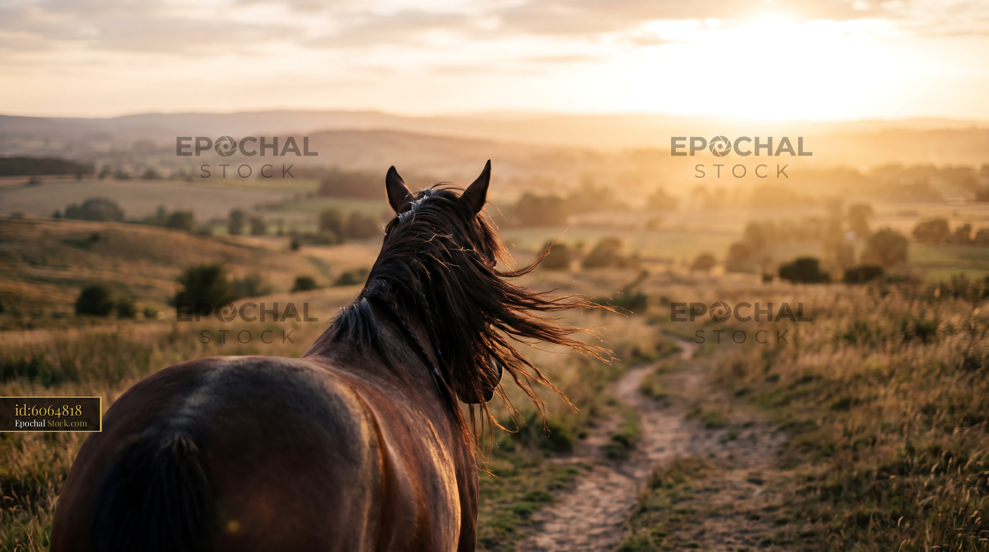 Golden Sunset Horse Mane Blowing in Wind