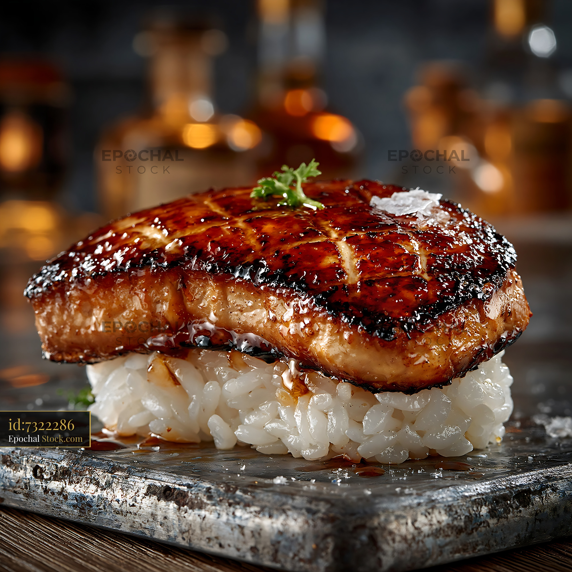 Gourmet seared foie gras nigiri sushi with sea salt and glaze