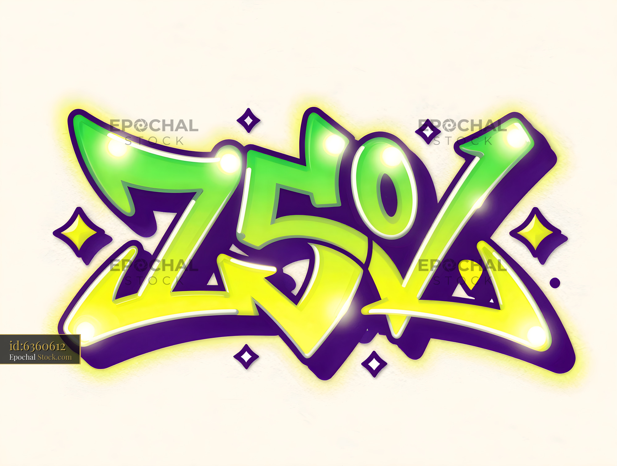 Graffiti art showing 250 percent sign with bright colors Premium Stock Photo