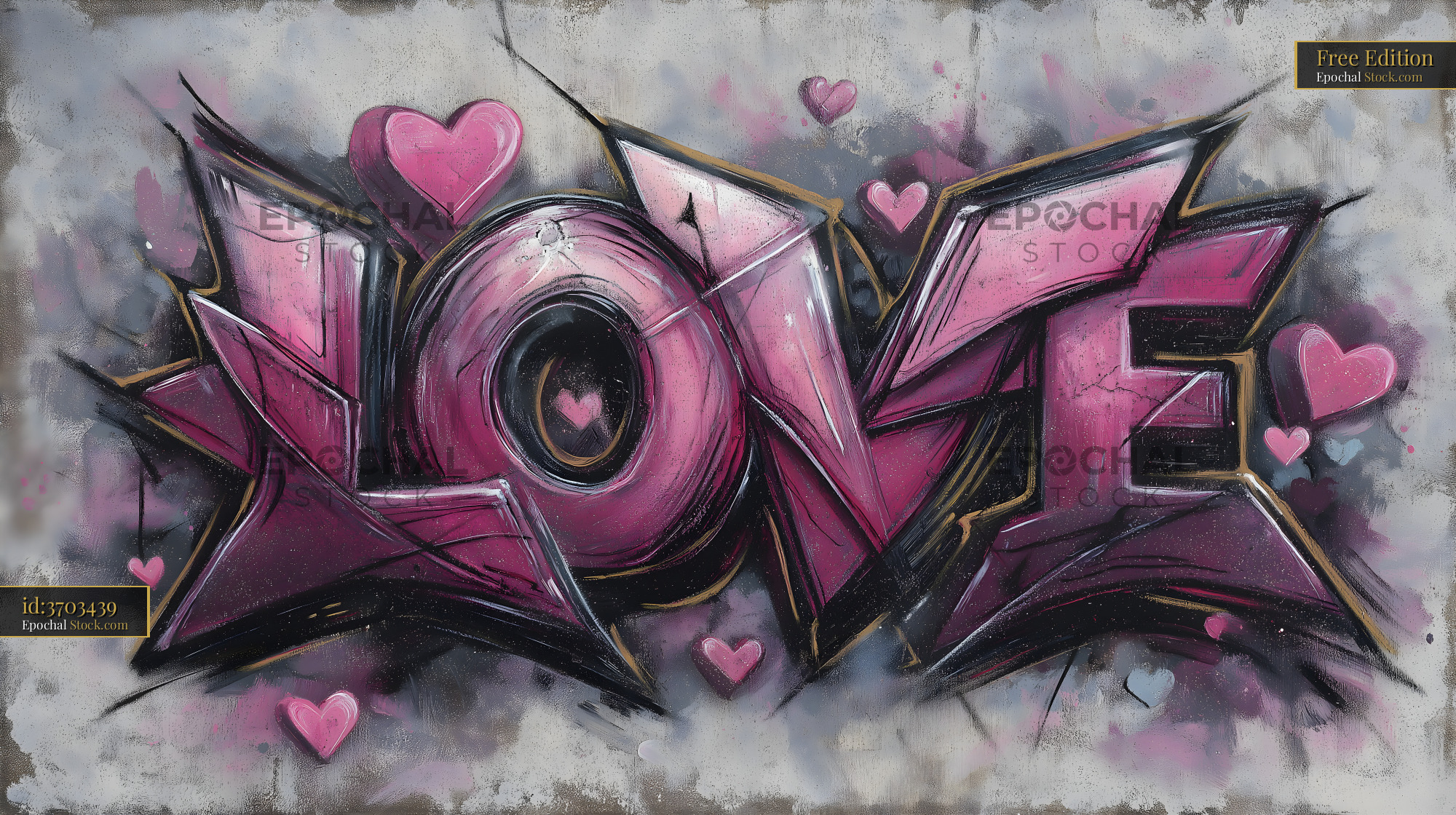 Graffiti art with the word love and hearts on a wall Free Premium Stock Image