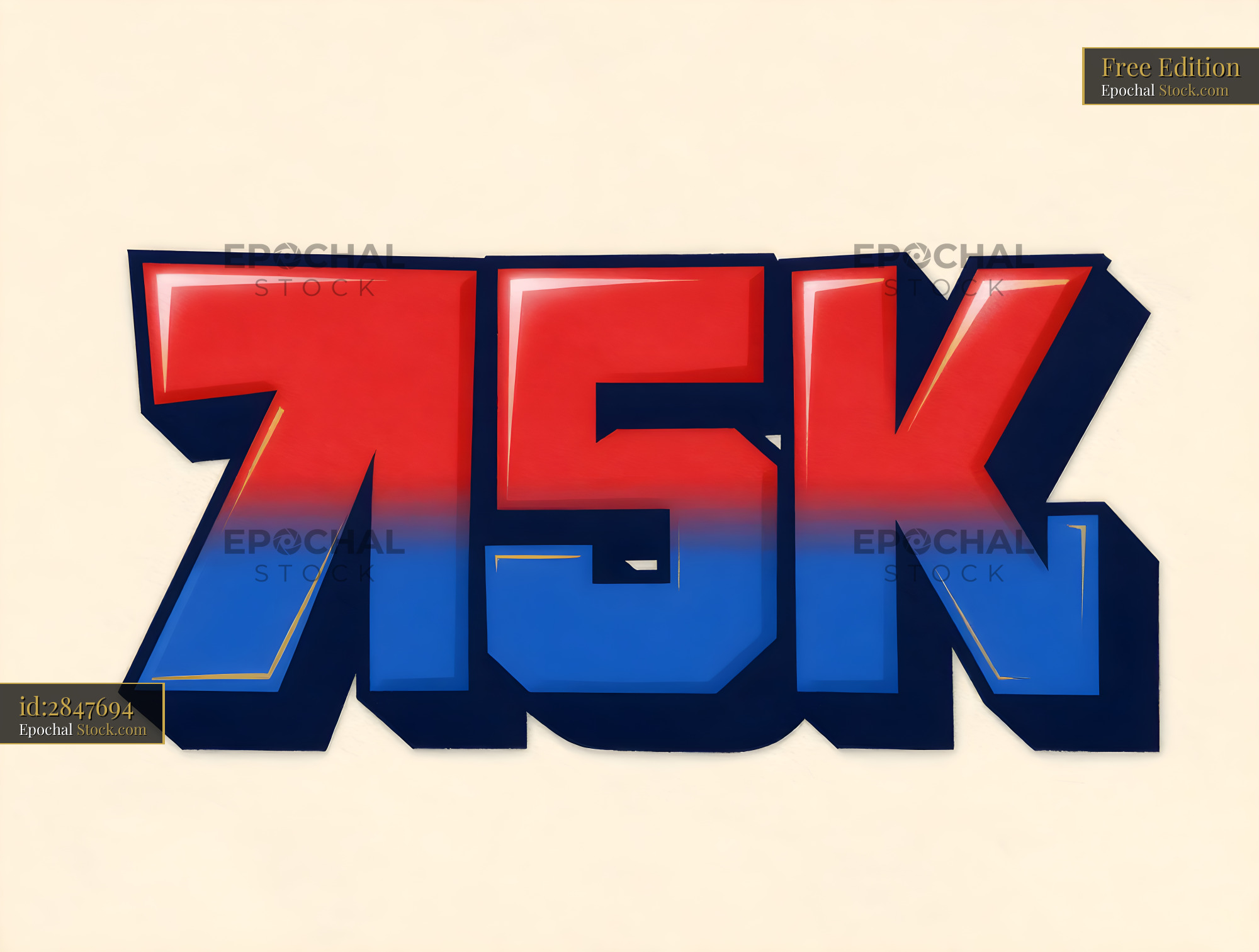 Graphic design of 75K in bold letters with gradient colors Free Premium Stock Image