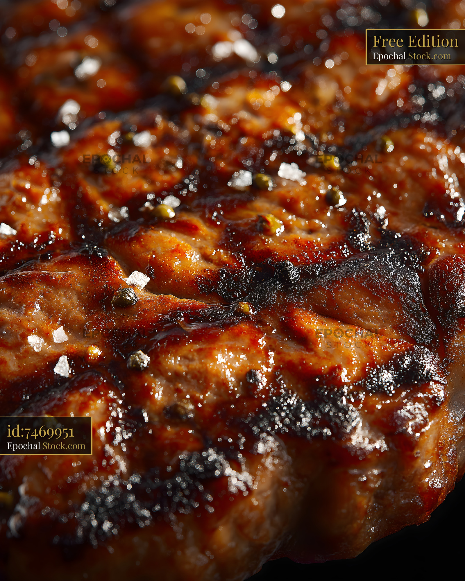 Grilled meat on a barbecue with spices and glaze Free Premium Stock Image