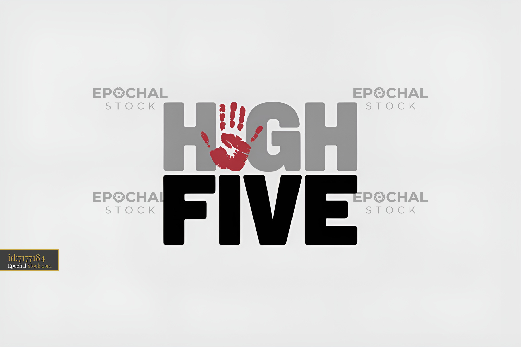 A creative design displays the phrase high five. The word high is in light gray, while five is in black. A red handprint is placed in the middle of the text.