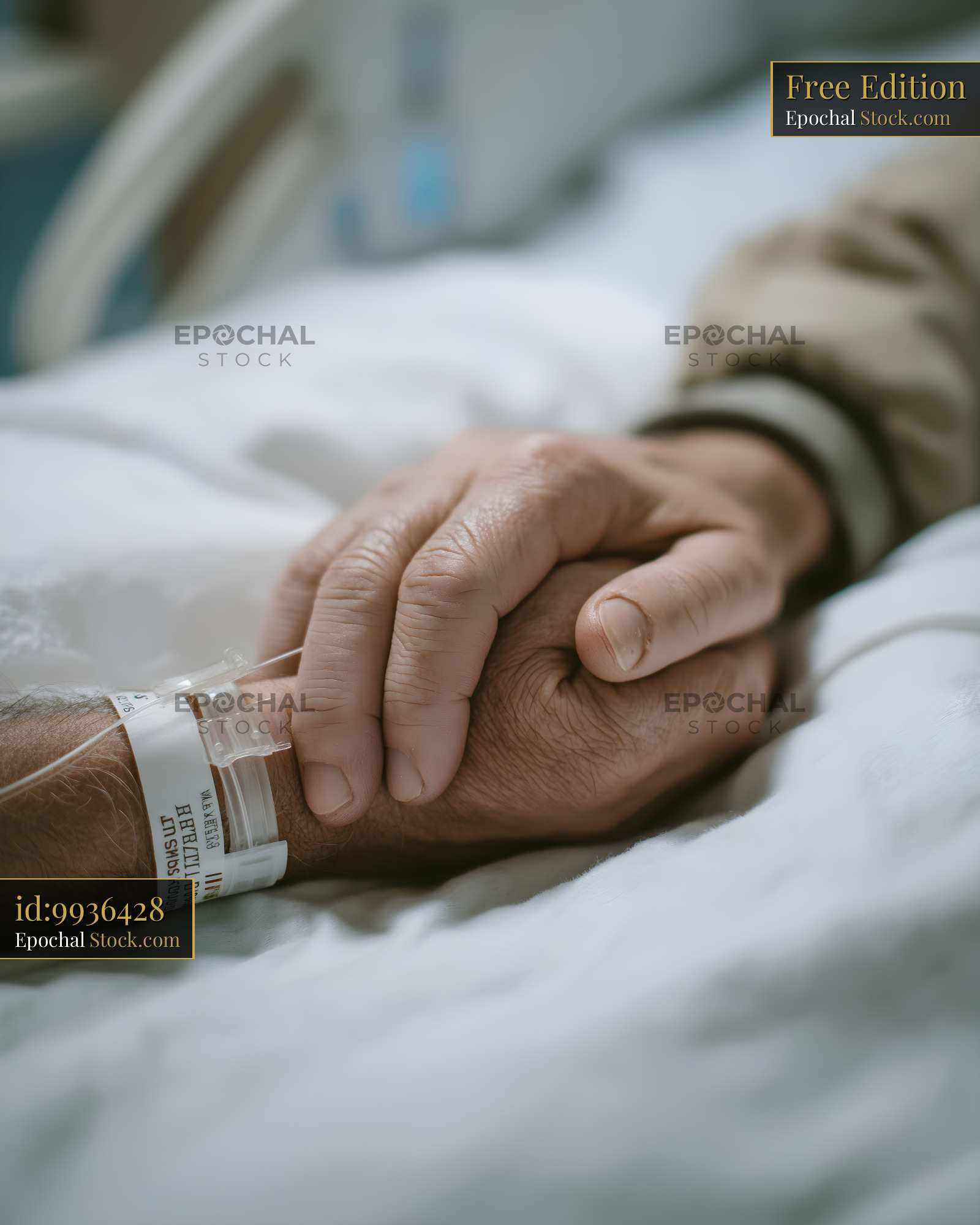 Hands hold together in a hospital room during recovery Free Premium Stock Image