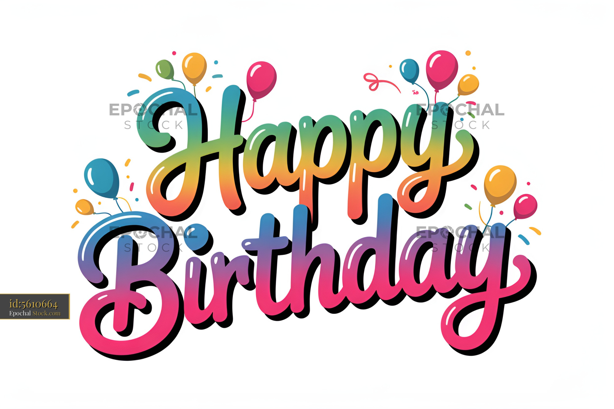 Bright birthday greeting shows the words happy birthday in large letters. Colorful balloons float around the letters, adding to the festive look. This design is fun and playful.