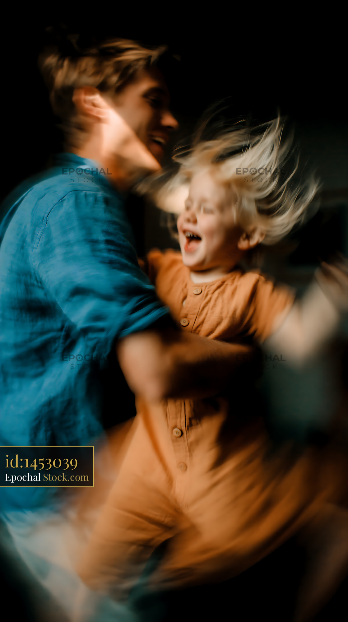 A dynamic and joyful scene of a father spinning his young daughter, captured with motion blur to emphasize the energy, laughter, and strong emotional bond between them.