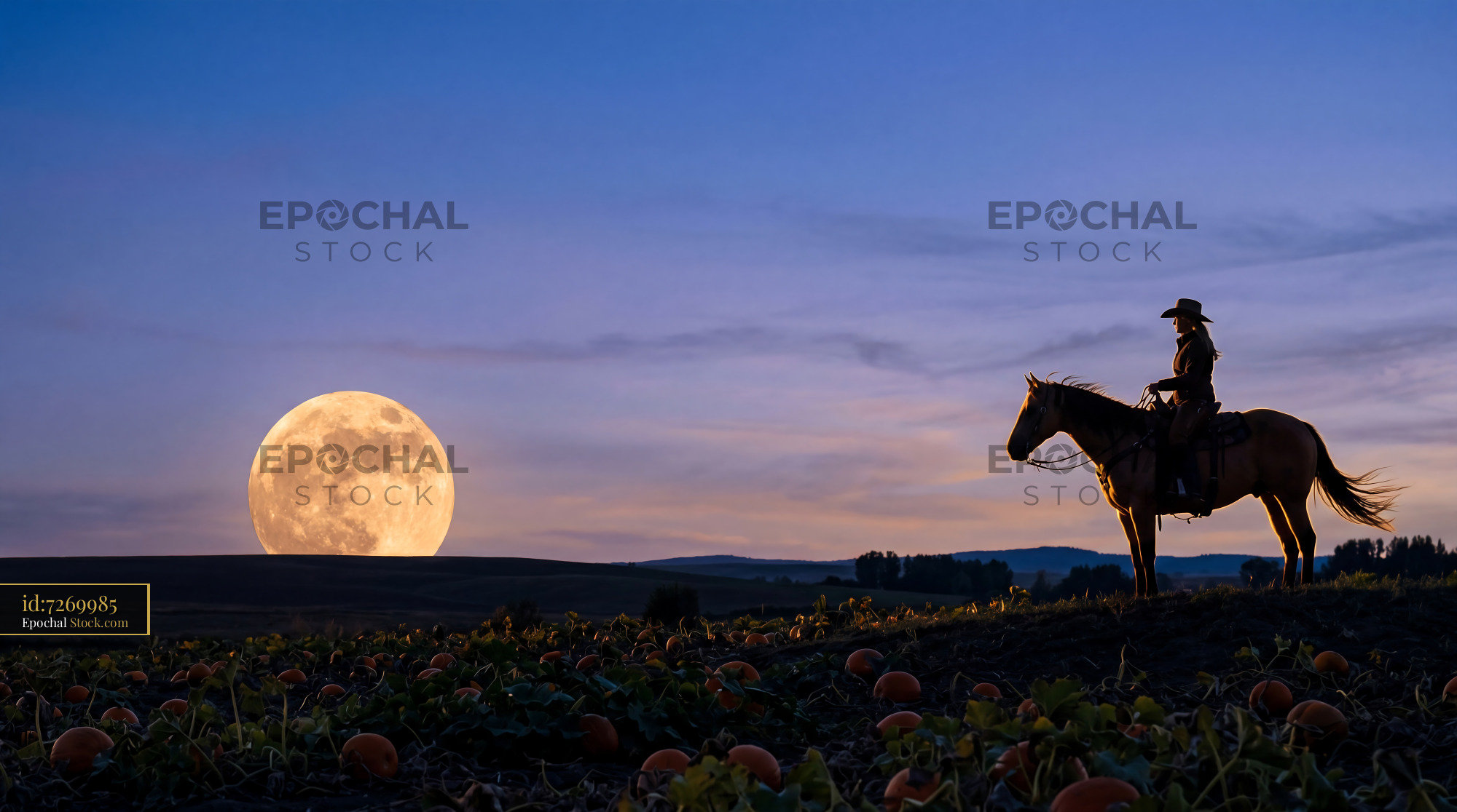 Harvest Moon Cowgirl Horse Pumpkin Patch