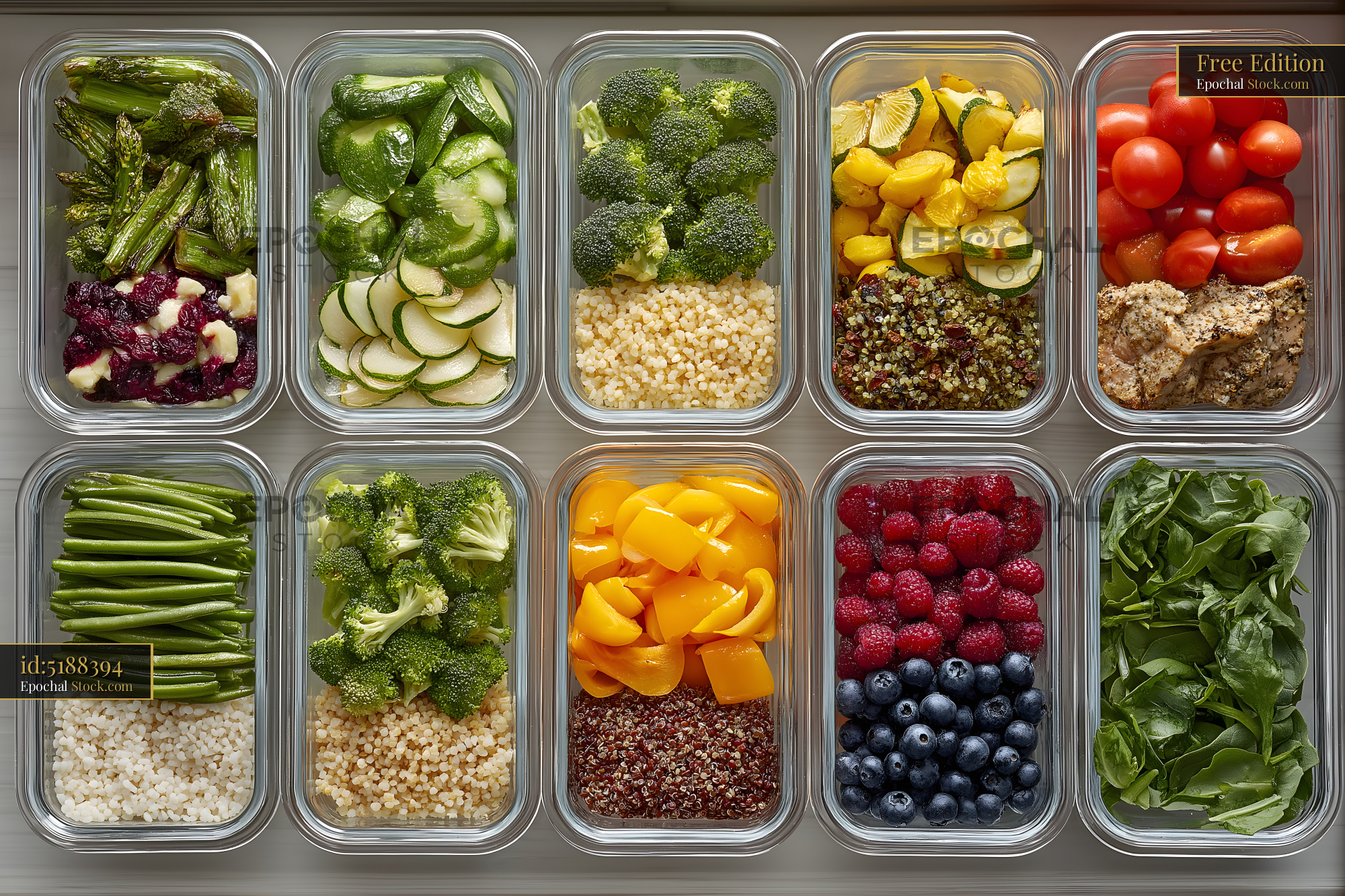 Healthy meal prep with various fresh ingredients in containers Free Premium Stock Photo