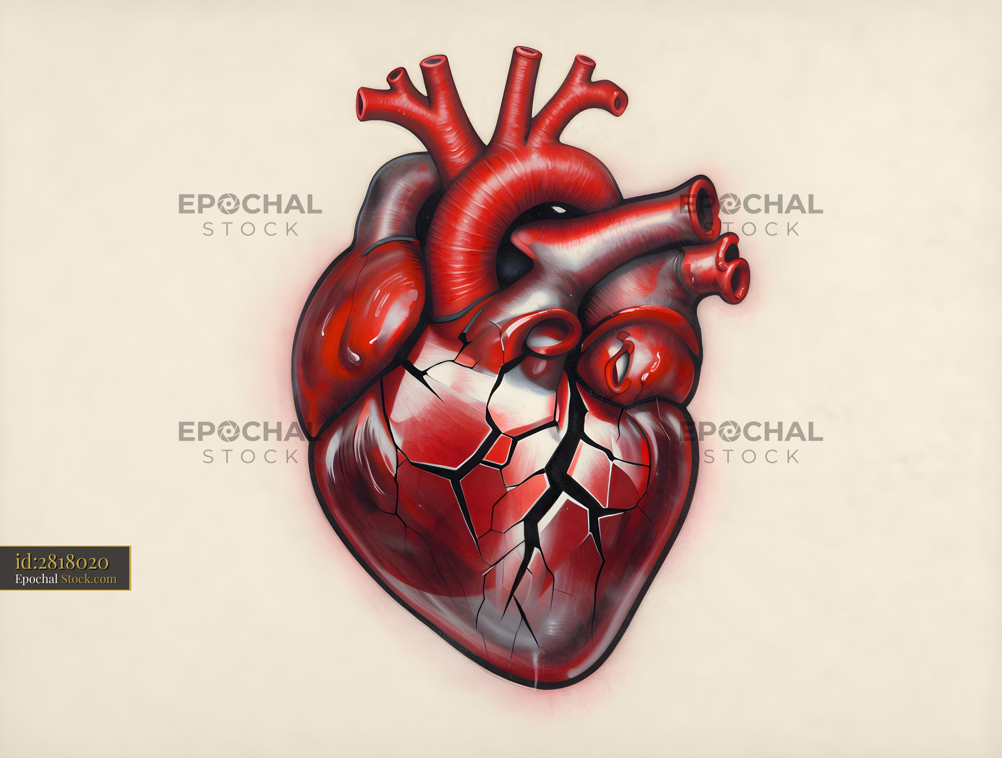 The heart design shows cracks and breaks, symbolizing injury and conflict. The colors used highlight the changes and stress on this vital organ.