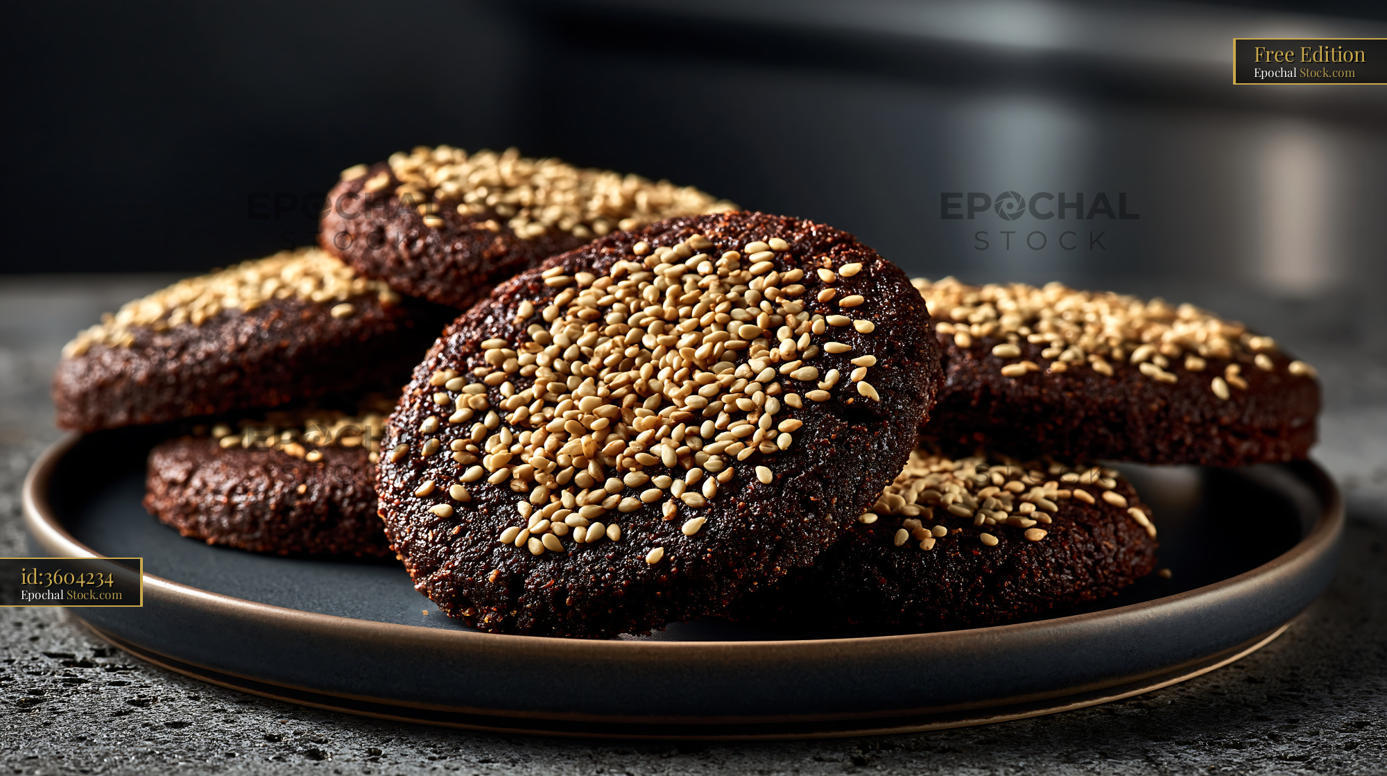 Homemade dibs el kharroub biscuits with sesame seeds on a dark plate