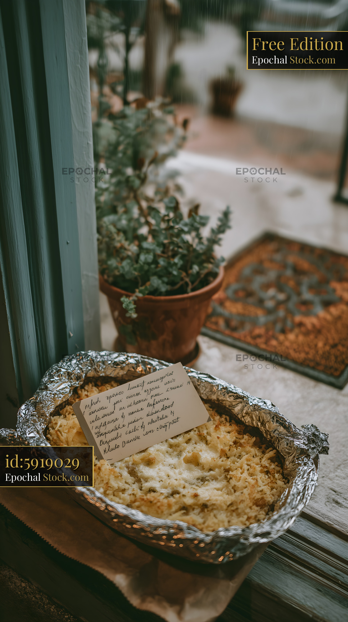 Homemade meal sits on window ledge near potted plant Free Premium Stock Image