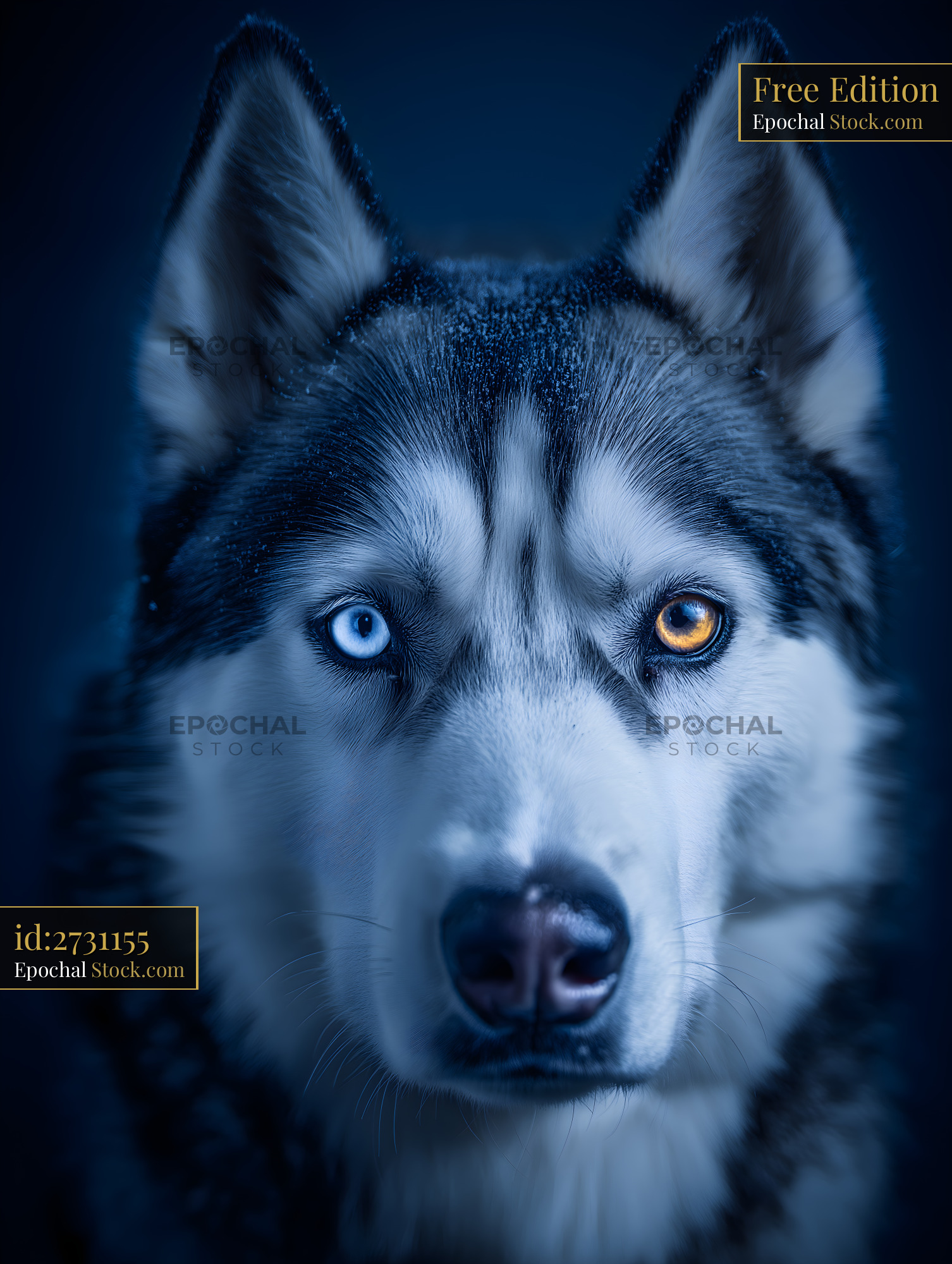 Husky dog with two different colored eyes on a dark background Free Premium Stock Photo