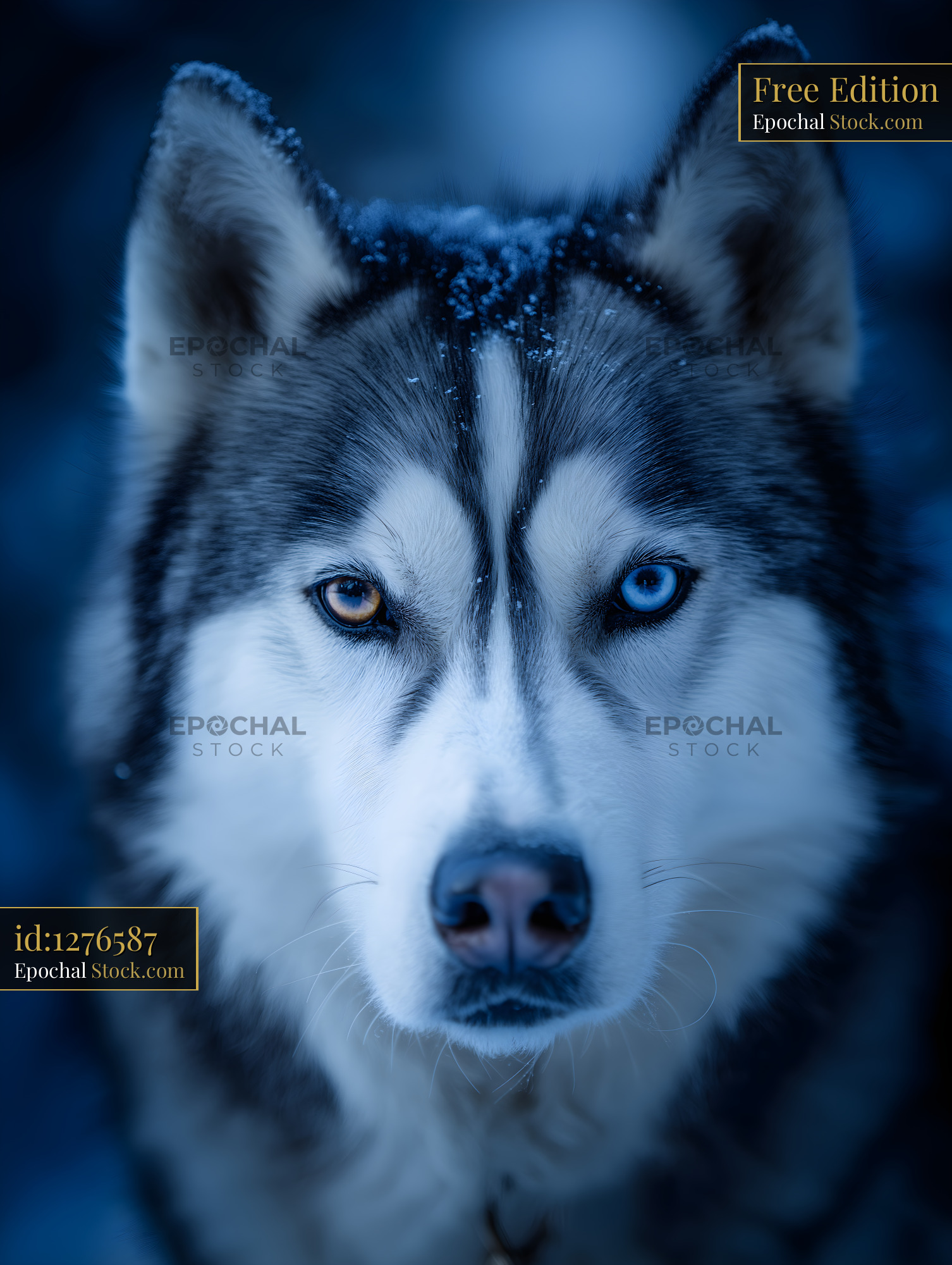 Husky stands still in the snow during winter evening light Free Premium Stock Photo