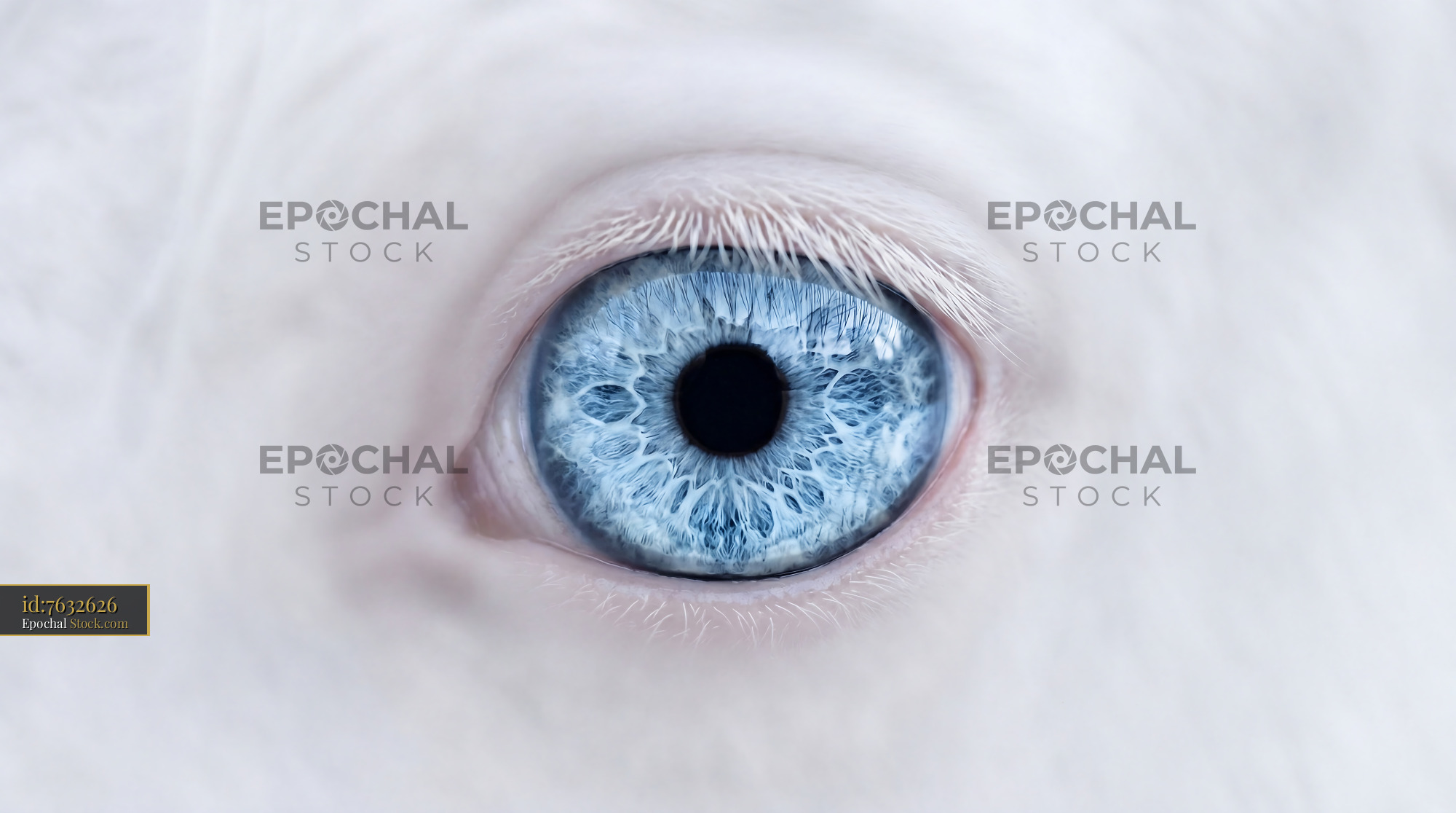 Ethereal macro of a white horse's ice-blue iris with crystalline details. Ideal for statement upholstery, unique apparel, or dreamy nursery wallpaper and modern gift wrap.