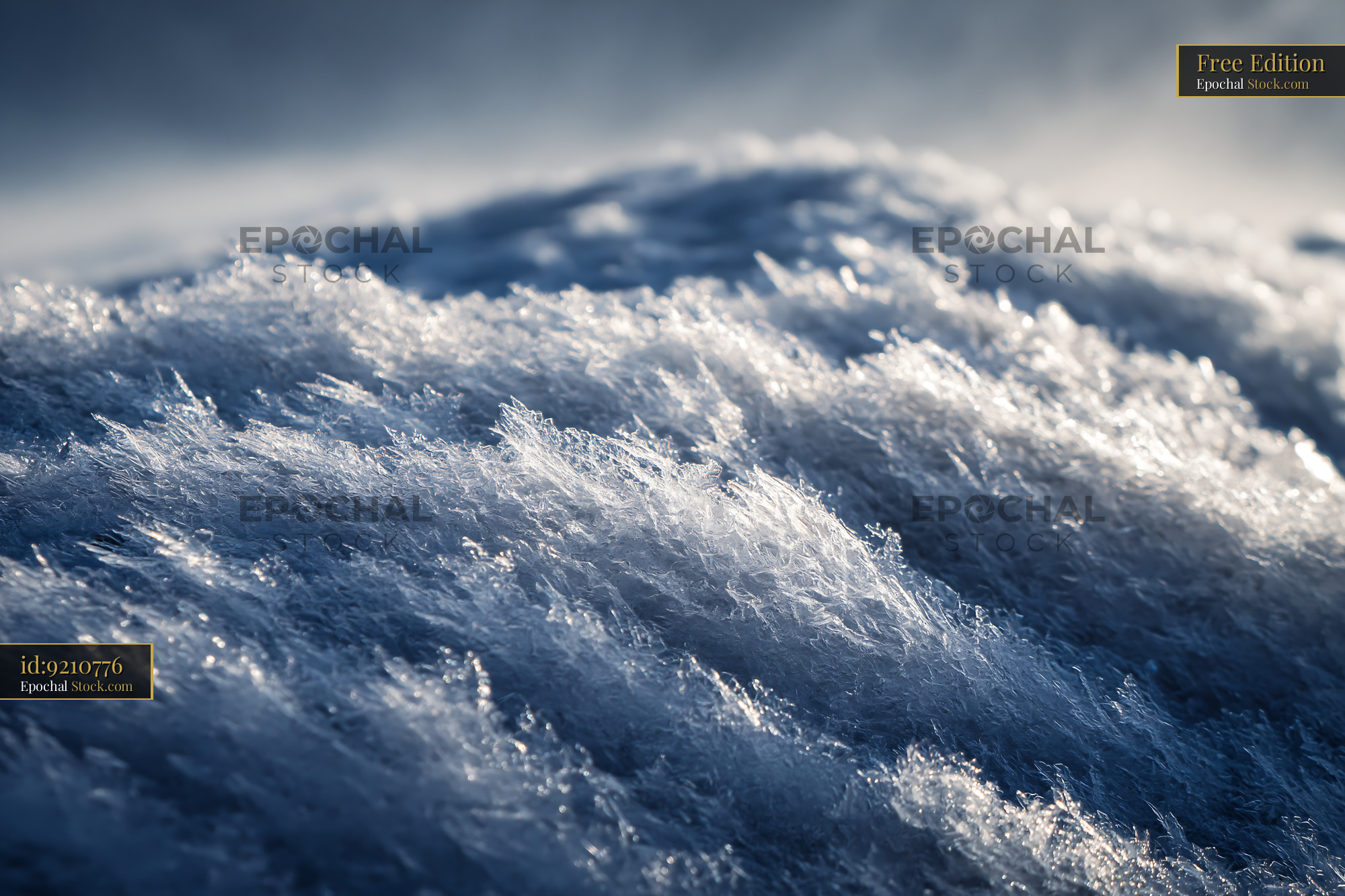 Sharp frost formations catch the fading light of a winter evening, creating an abstract landscape that evokes the power of a stormy ocean at dusk.