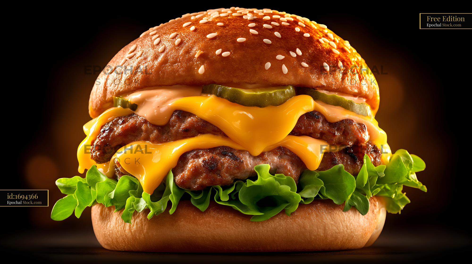 Juicy burger with cheese and pickles on sesame seed bun Free Premium Stock Photo