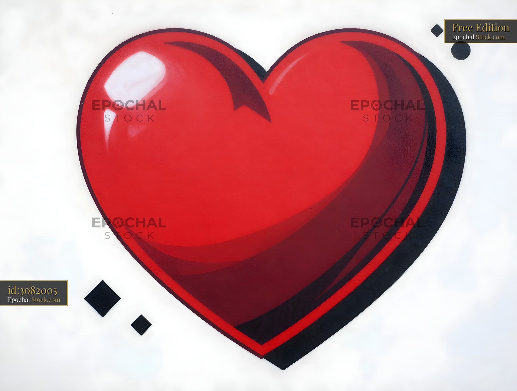A large red heart symbol is painted on a white surface. The heart has a shiny appearance with black accents. The art is simple and bold, drawing attention in its space.