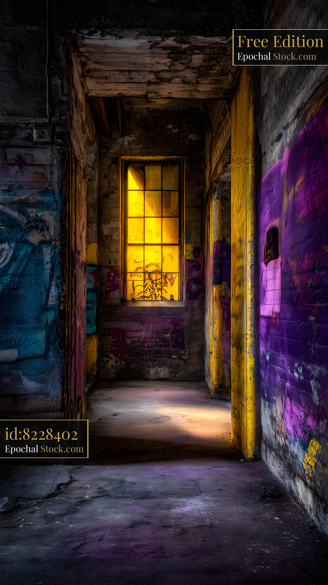 Light shines through an old building with colorful walls Free Premium Stock Image