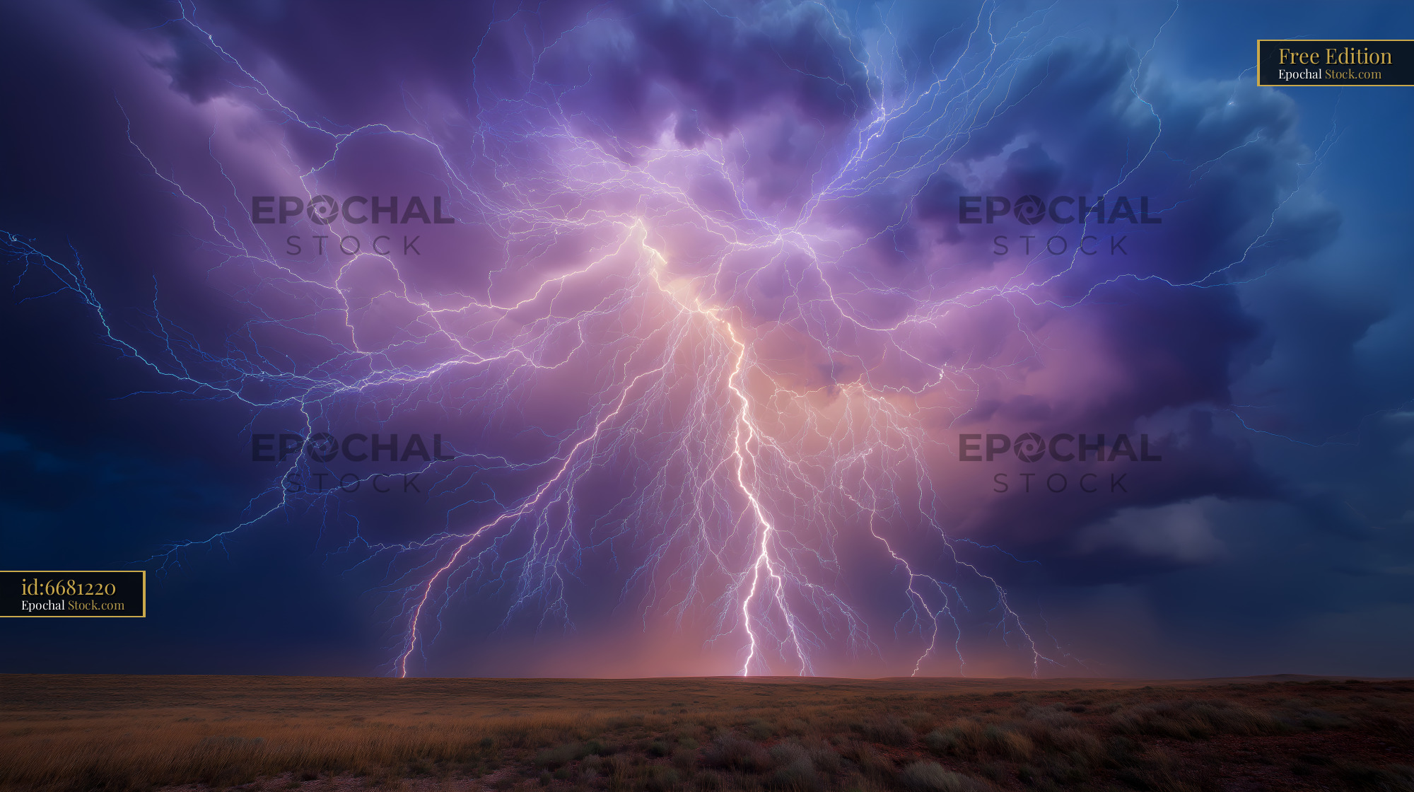 Lightning strikes over open field during stormy night Free Premium Stock Image