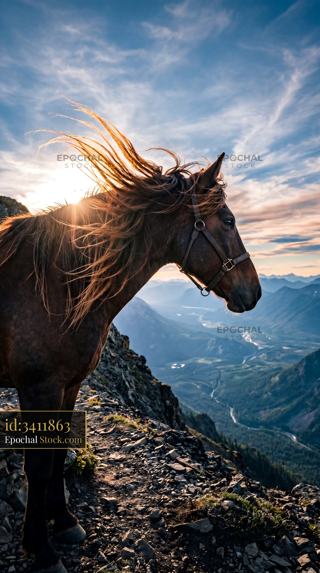 Majestic Horse Mane Blowing in Mountain Wind
