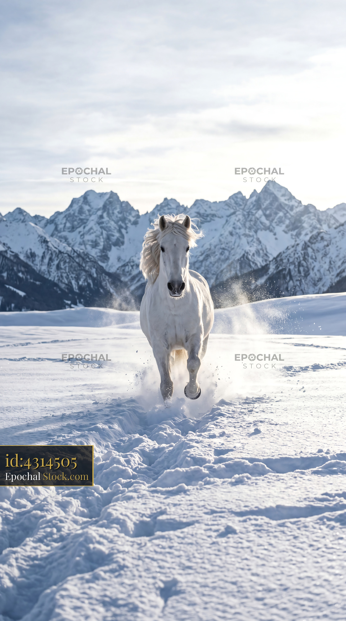 This majestic white horse pattern brings a serene winter landscape to life. Perfect for alpine-themed wallpaper, holiday gift wrap, or cozy nursery bedding and home decor.