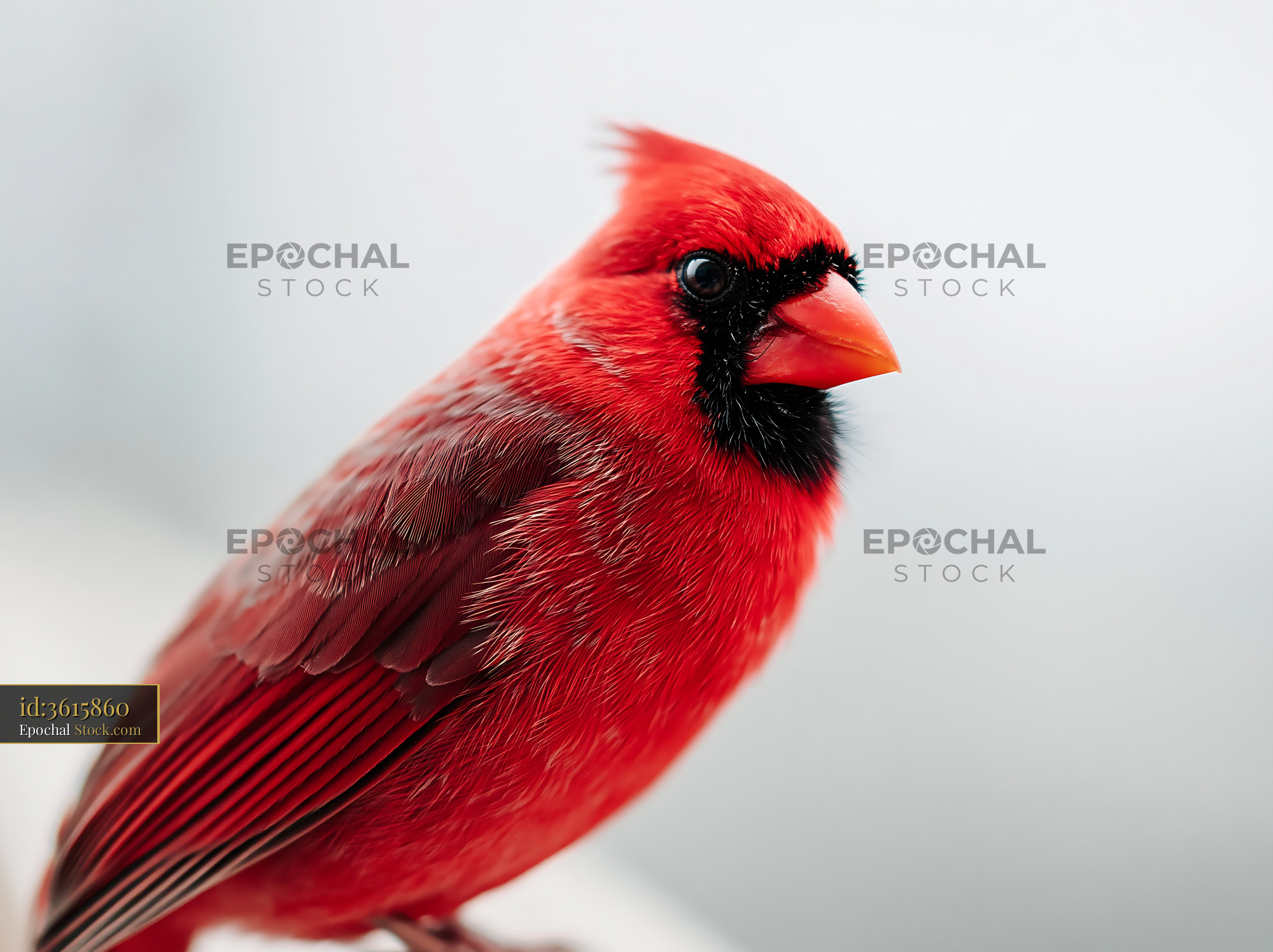 A close up of a stunning male northern cardinal showcasing its bright red plumage and alert expression against a soft minimalist background, symbolizing vitality and nature's beauty.