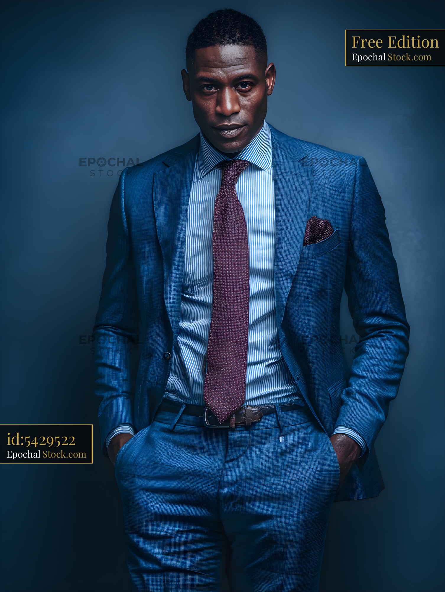 Man in blue suit stands confidently against dark background Free Premium Stock Photo