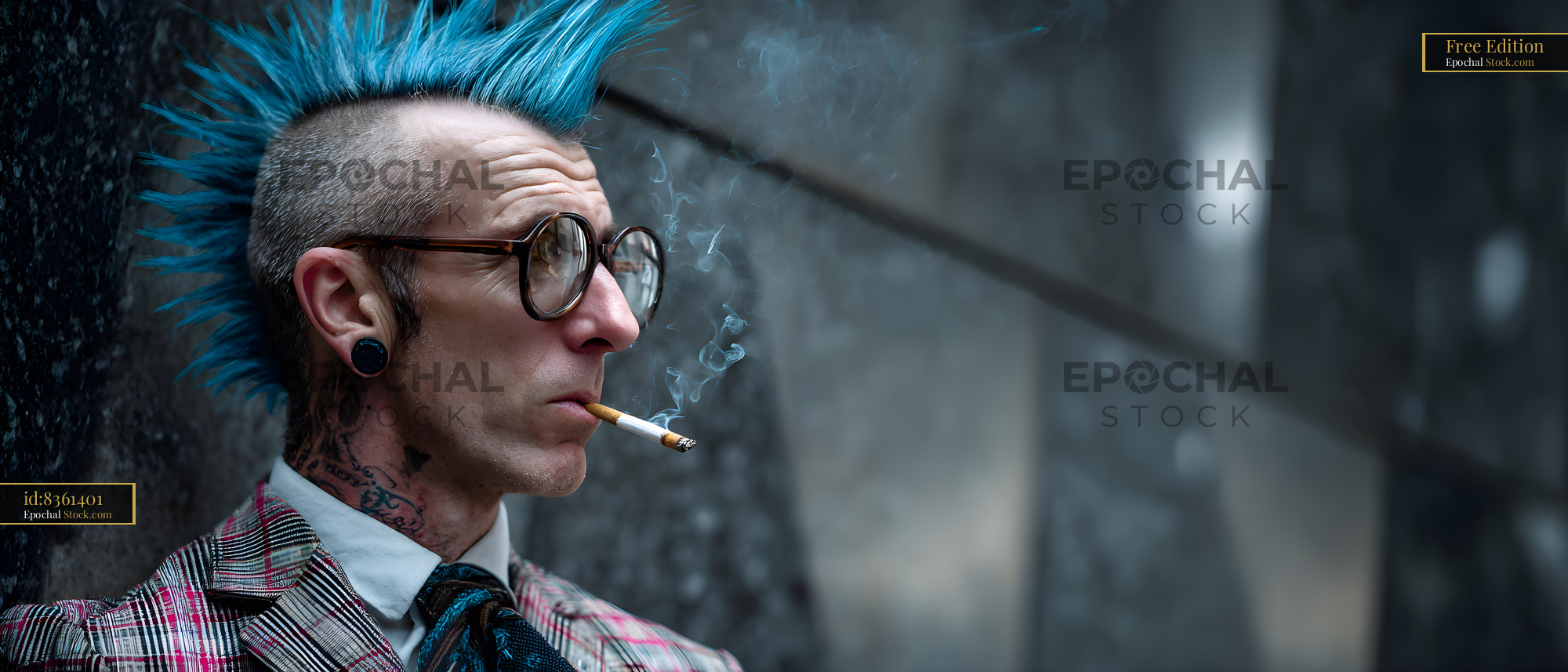 Man with blue hair smokes a cigarette in urban setting Free Premium Stock Photo