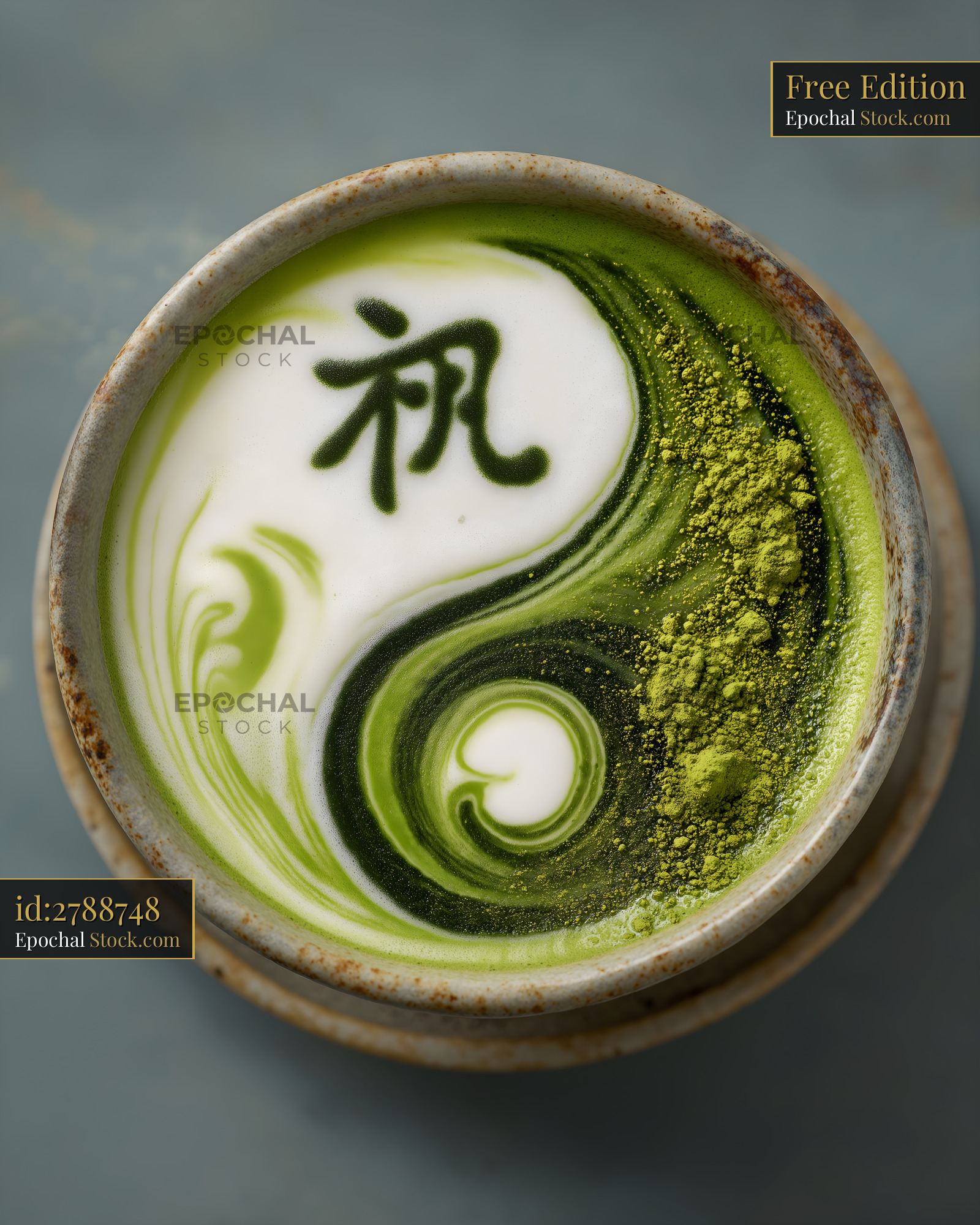 Matcha drink with yin yang design and Japanese lettering Free Premium Stock Image