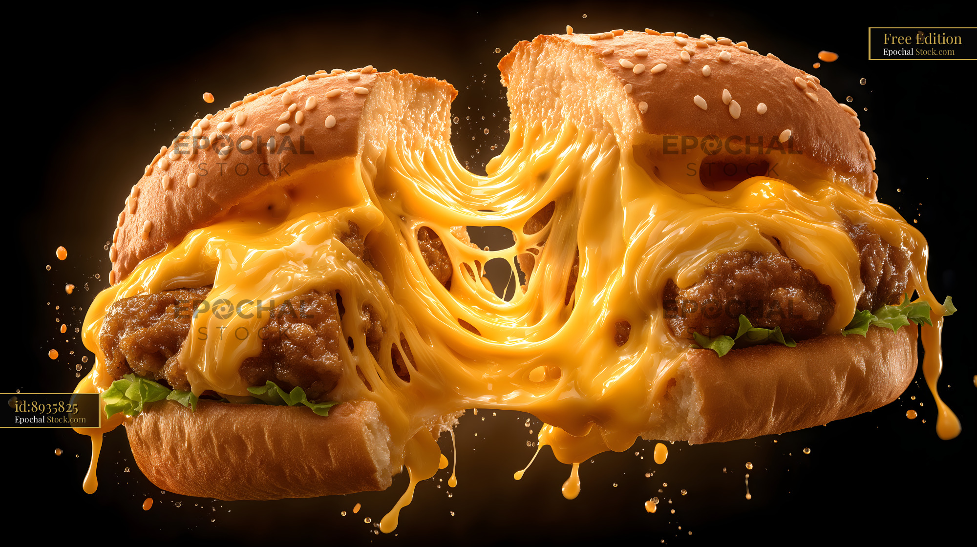 Melted cheese and chicken burger with sesame seed bun Free Premium Stock Image