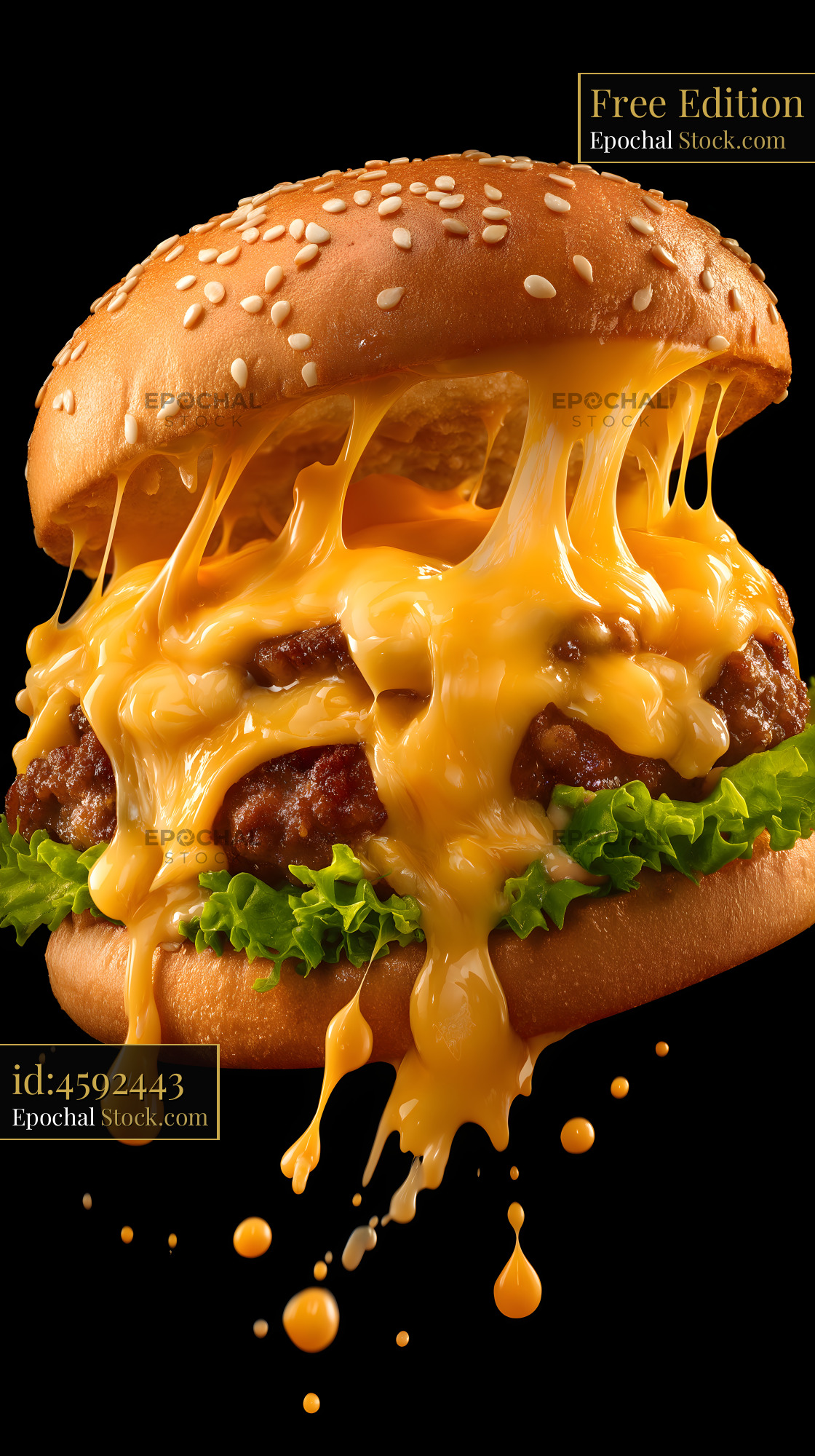 Melted cheese flows from a burger with lettuce and bun Free Premium Stock Image