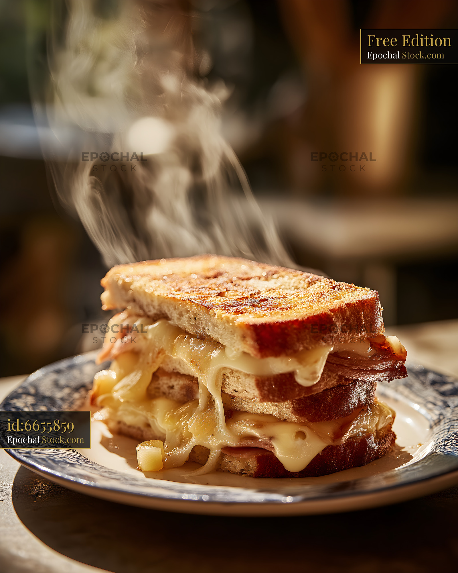 Melting cheese sandwich stacked on a plate with steam rising Free Premium Stock Image
