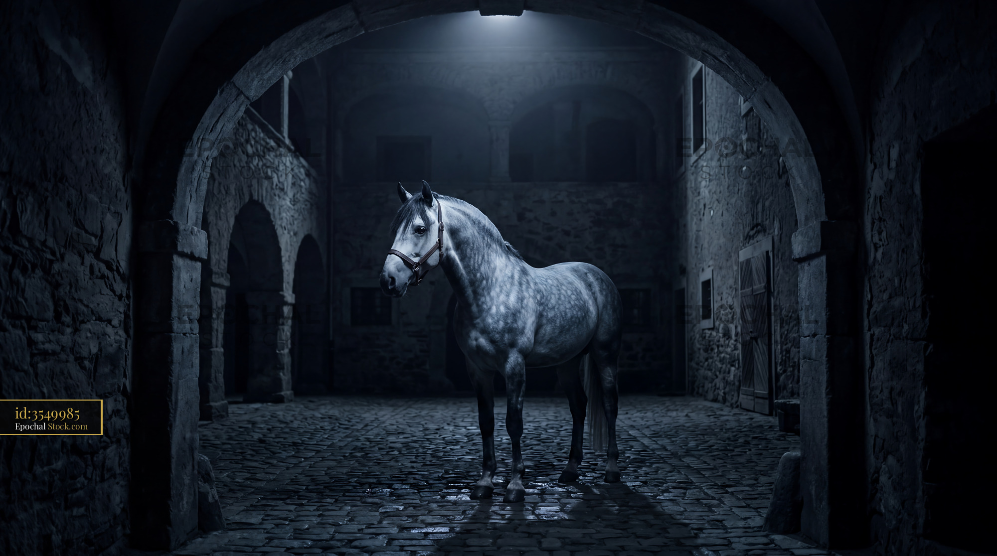 Midnight Lipizzaner Horse in Stone Archway