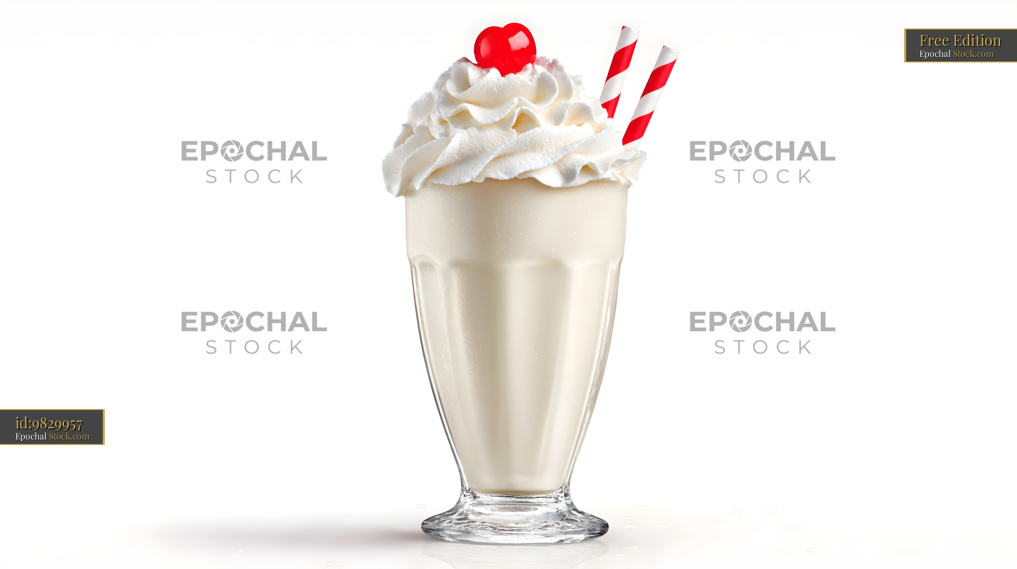 Milkshake with whipped cream and cherries on a table Free Premium Stock Image