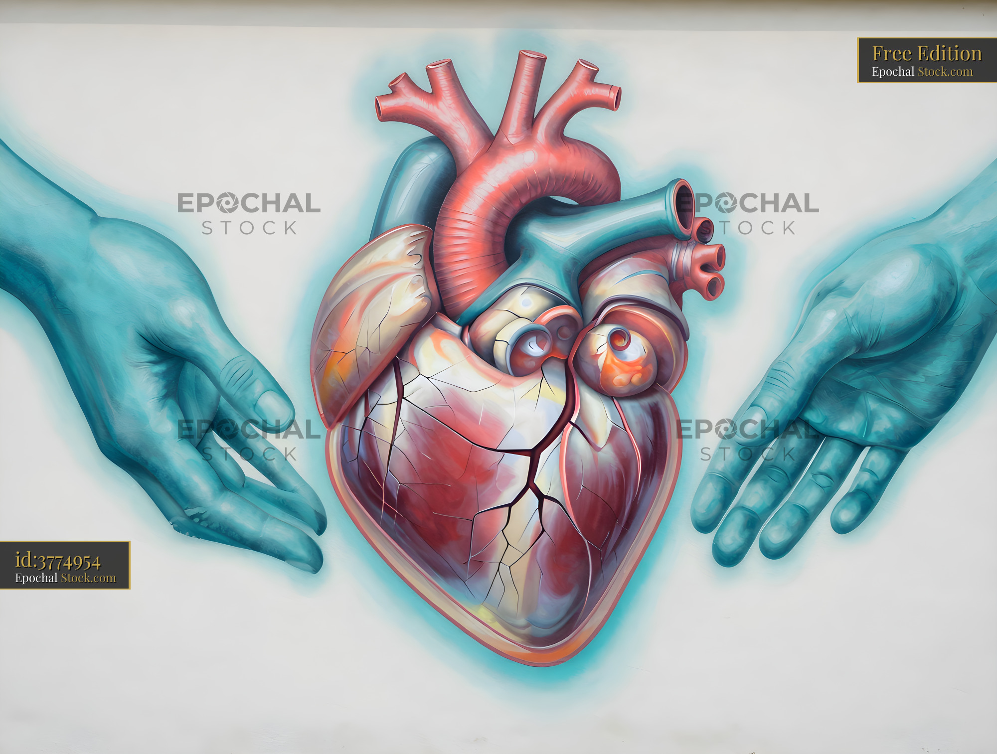 Modern mural showing a heart with hands reaching out Free Premium Stock Image