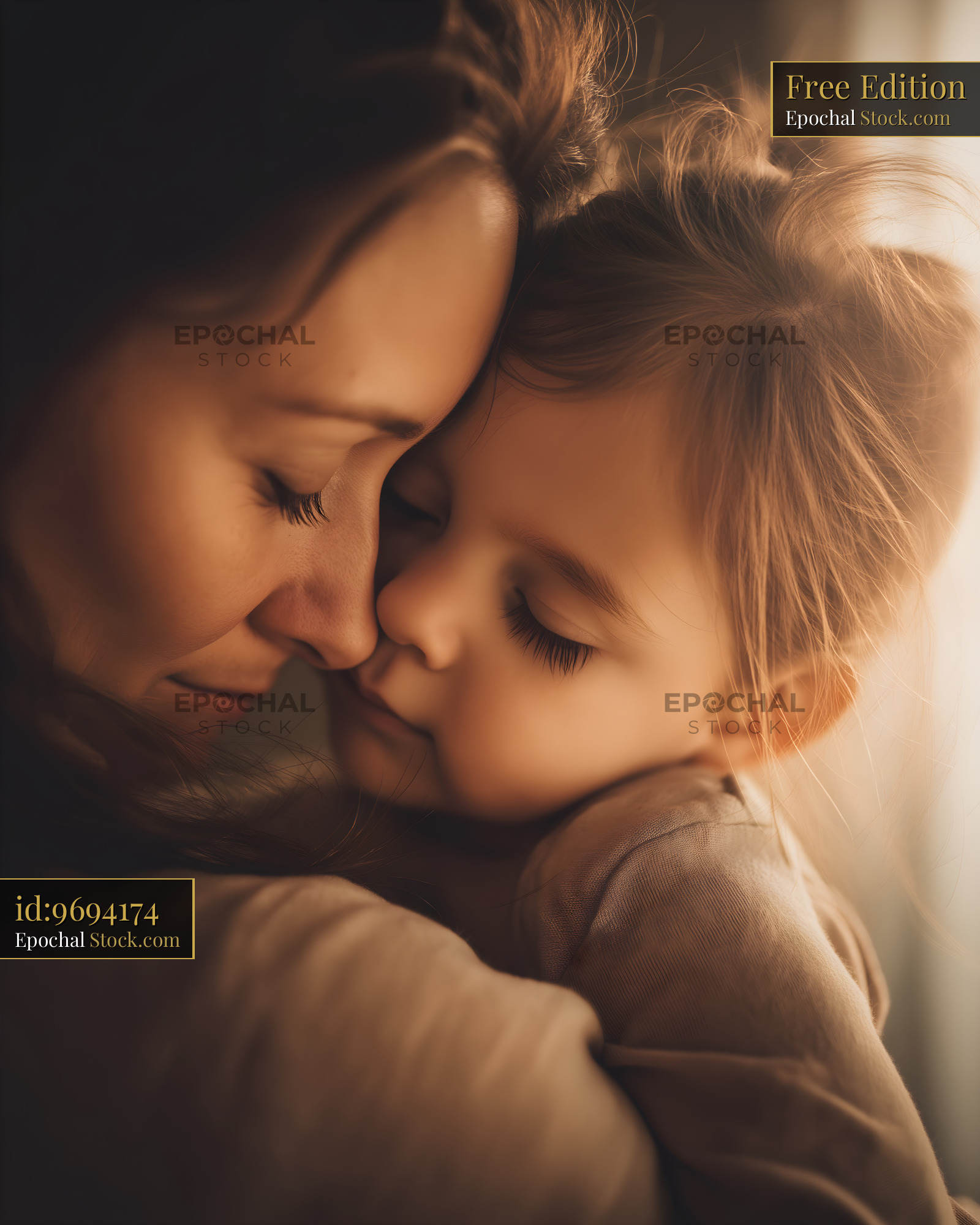 A mother hugs her child closely while they share a tender moment. The warmth of the room surrounds them, creating an intimate scene of love and comfort between them.