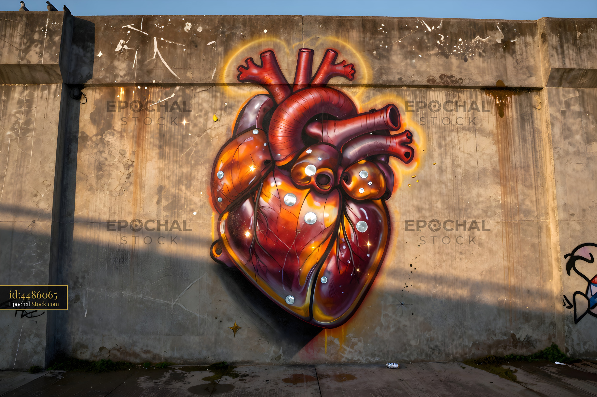 Mural of human heart on concrete wall in urban area Premium Stock Image