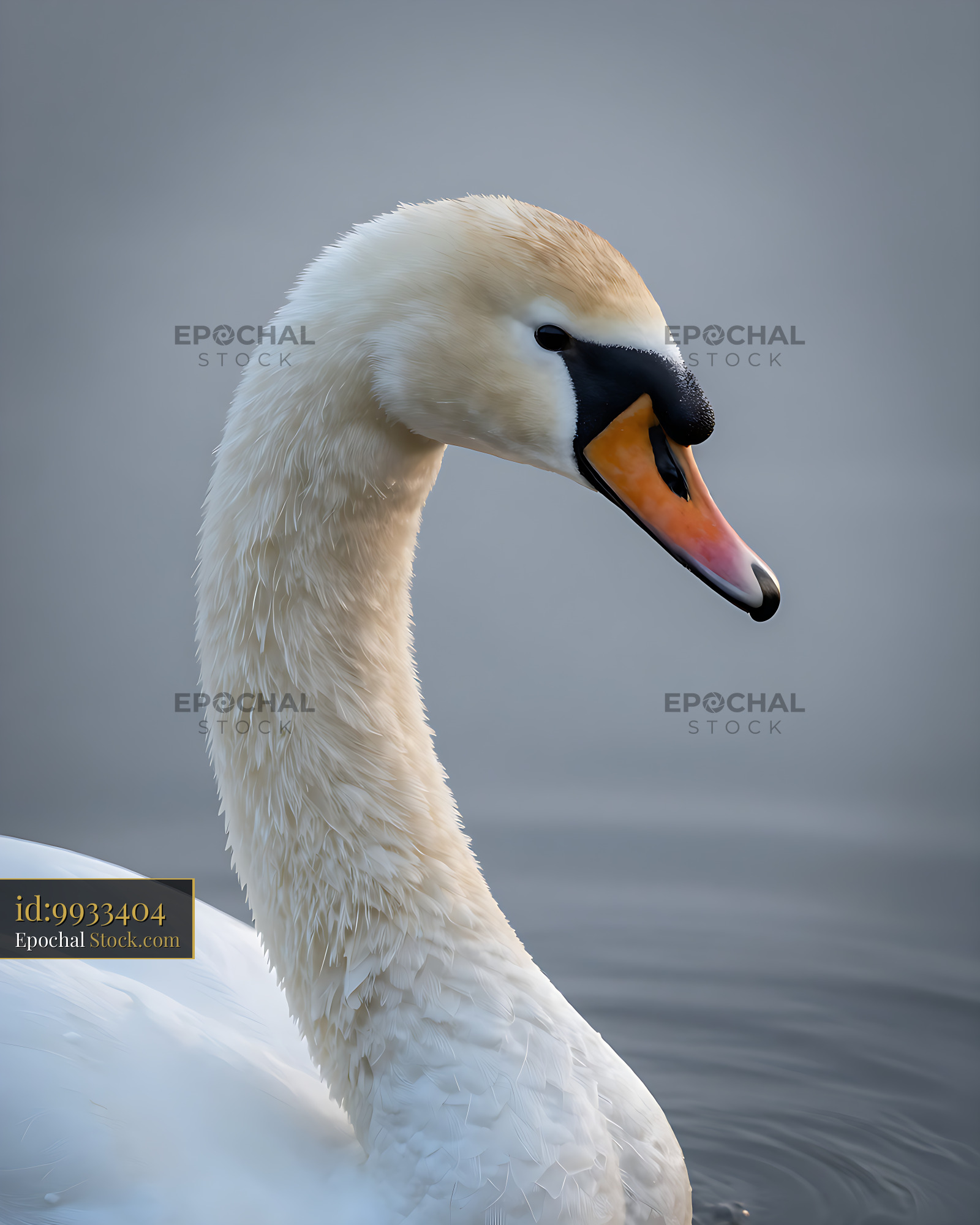 Mute swan profile on calm water at dawn